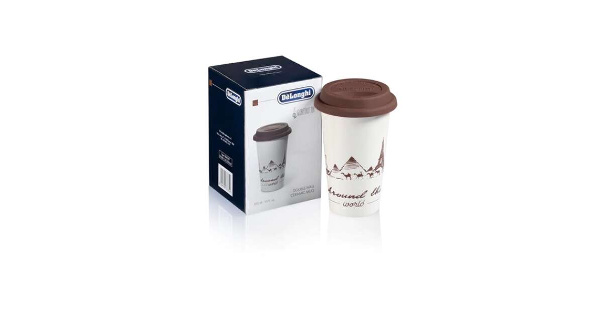 Тази стилна и практична пътна чаша DeLonghi е идеалният избор за любителите на кафето, които обичат да носят любимата си напитка със себе си, където и да отидат. Благодарение на керамичния дизайн с двойни стени, напитките ви ще останат топли за дълго време, а атрактивният дизайн "Around the World" ще ви оправи настроението.
