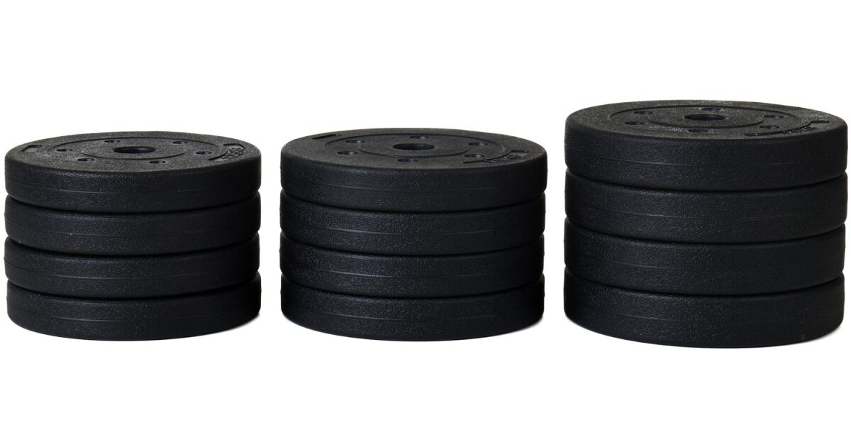 - Битумни тежести: Издръжливи и тихи. Пластмасовото покритие предотвратява наранявания и шумни тренировки. Клиентите също потвърдиха тихата употреба на комплекта.