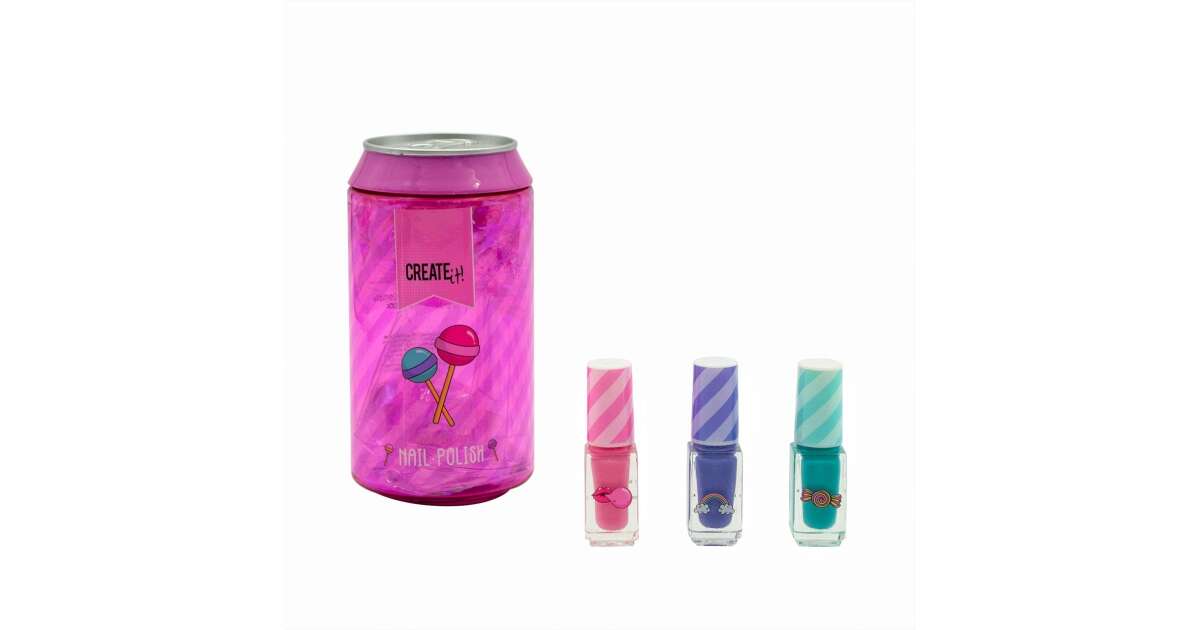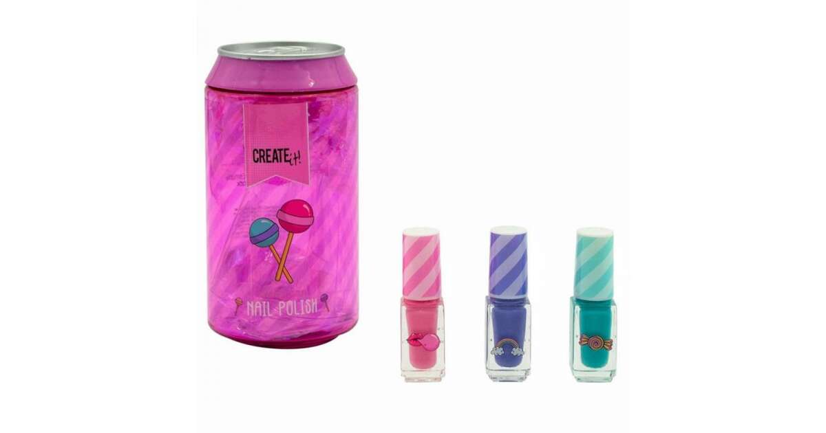Този весел сет лакове за нокти Canenco съдържа три прекрасни лака в сладки цветове, в уникална кутия, наподобяваща кутийка за напитки. Перфектен подарък за малки момиченца, или за собствено ползване! 💖