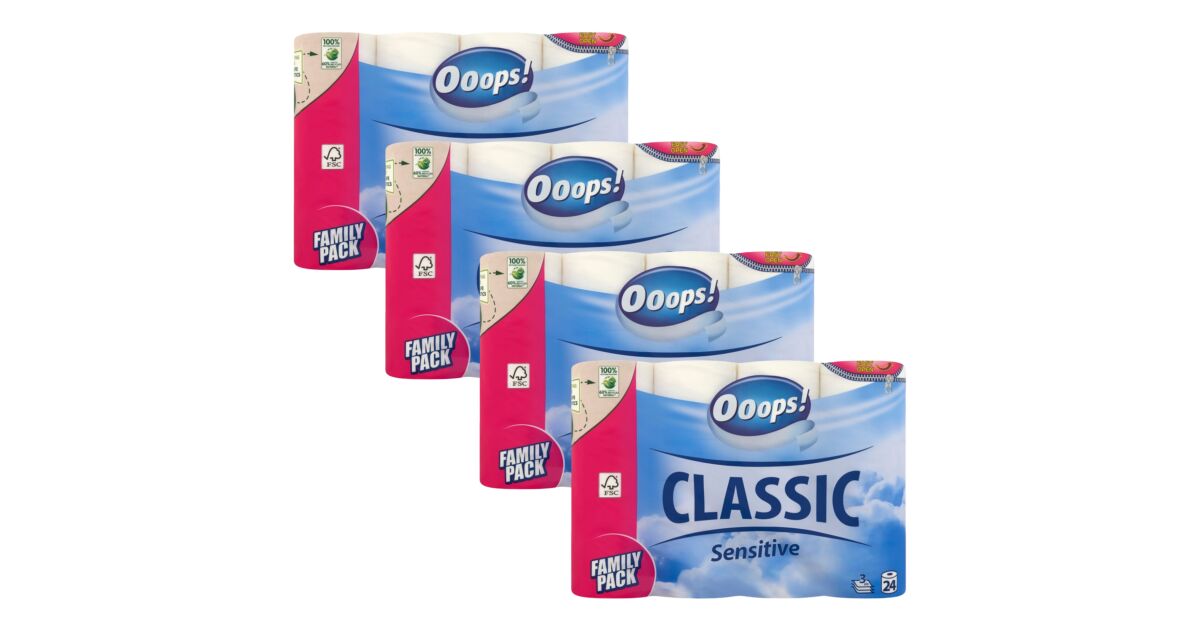 Начин на употреба на тоалетната хартия Ooops! Classic Sensitive 3-слойна тоалетна хартия е перфектният избор за ежедневна хигиена, особено за хора с чувствителна кожа. Премиум качеството и внимателно подбраните съставки гарантират меко и нежно докосване.