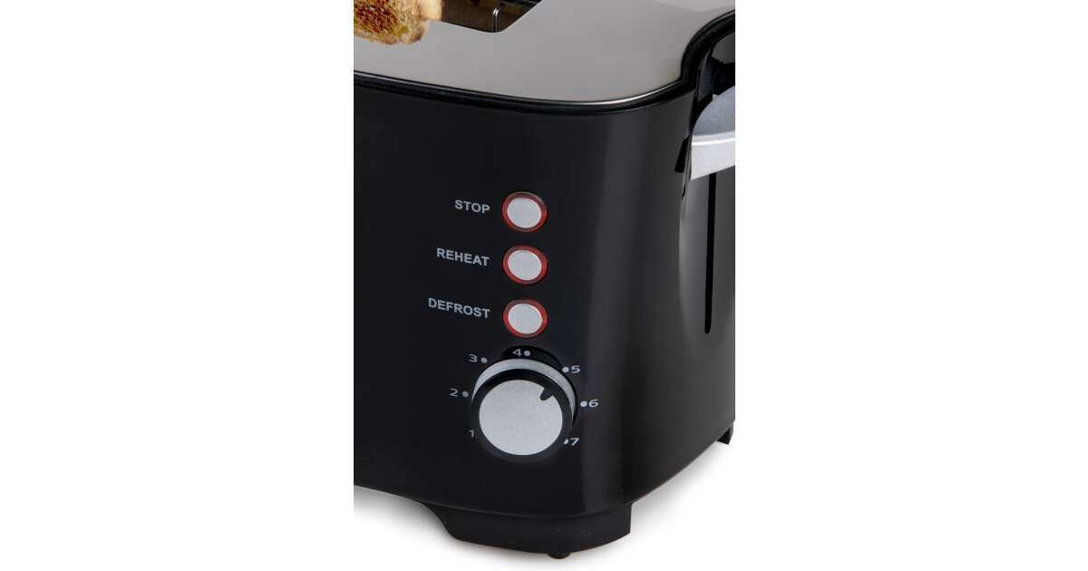 -Тостер DOMO DO961T, 1350W, 4 филийки, Регулируема степен на запичане, 7 степени, Функция размразяване, Черен/Неръждаема стомана (domoDO961T) описание на...