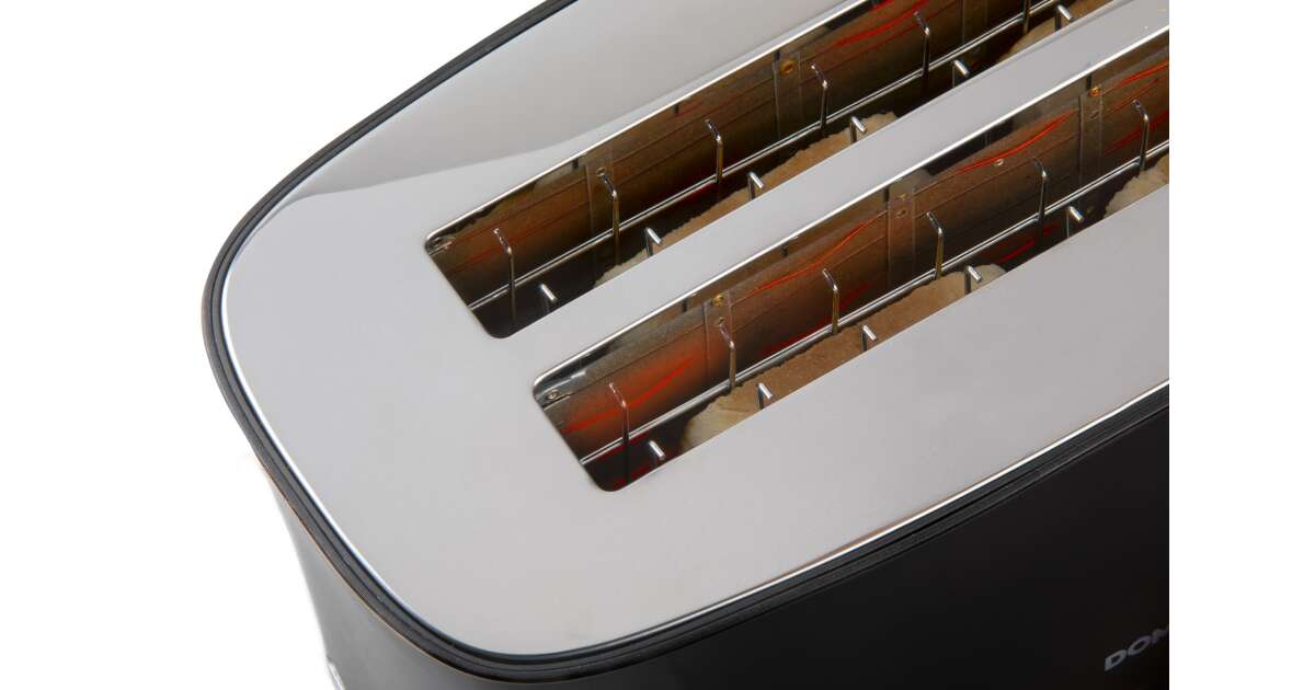 Тостер DOMO DO961T, 1350W, 4 филийки, Регулируема степен на запичане, 7 степени, Функция размразяване, Черен/Неръждаема стомана (domoDO961T)