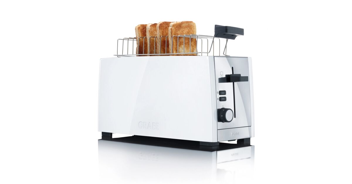 Тостер Graef, TO101, за багети и филии хляб, капацитет 4 филии, включена приставка за хлебчета, регулируема степен на запичане, функция размразяване,... покупка: