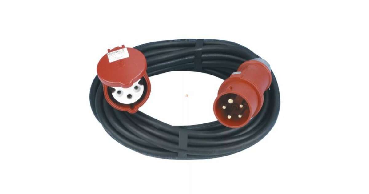 Трифазен удължител за външно приложение 25 м / 1 гнездо / черен / гумен / 400 V / 4 mm2