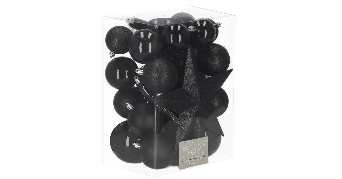 Искате да имате елегантна и модерна коледна елха тази година? Този комплект от 33 коледни украшения за елха Springos е идеалният избор! Комплектът се допълва от черни матови и блестящи топки, ледени висулки и поразителна звезда. Предлагат се в различни размери (5, 6 и 8 см), за да можете лесно да украсите елхата си.