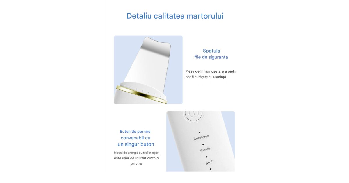 - Звуково ексфолиране: Премахва мъртвите клетки, за да разкрие свежа, нова кожа и да придаде сияен вид на лицето.