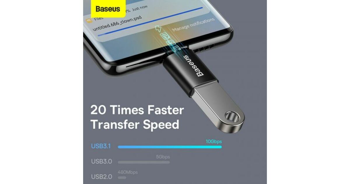 Разширете възможностите на вашите устройства с Baseus Ingenuity USB-C към USB-A адаптер! Можете да копирате файлове със скорост до 10 Gbps и да свързвате различни устройства с лекота.