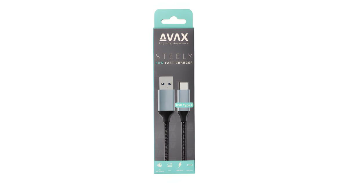 AVAX Steely USB-A/C Кабел за бързо зареждане: 60W мощност, здравина и качество 💪