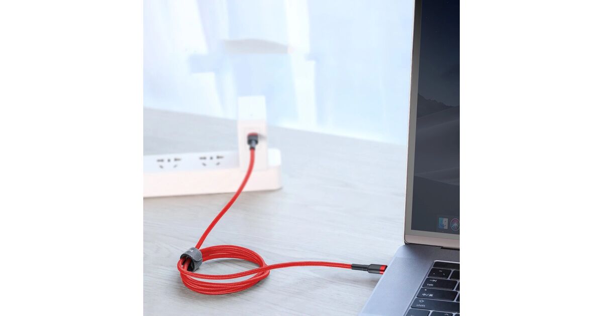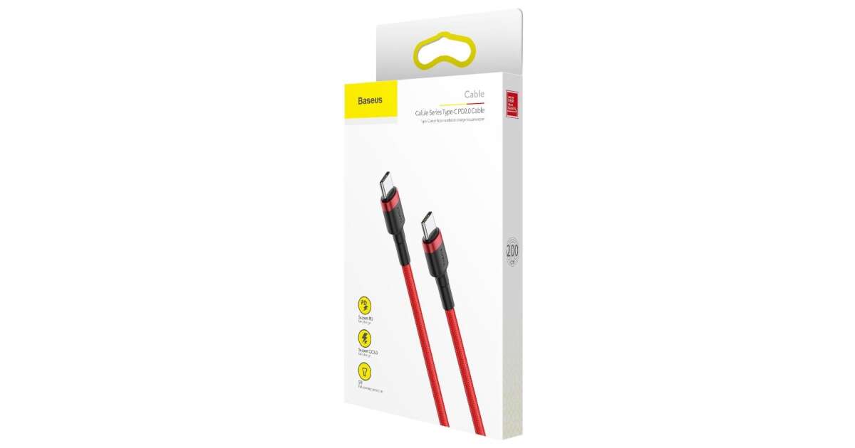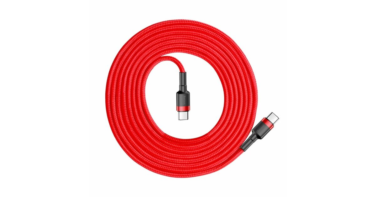 Baseus Cafule USB-C to USB-C Cable PD 2.0 60W - кабел с въжена оплетка и бързо зареждане за устройства с USB-C порт (200 см) (червен) (CATKLF-H09) описание на...