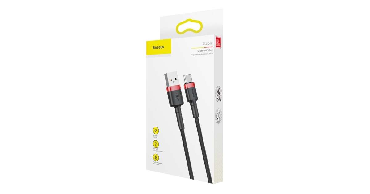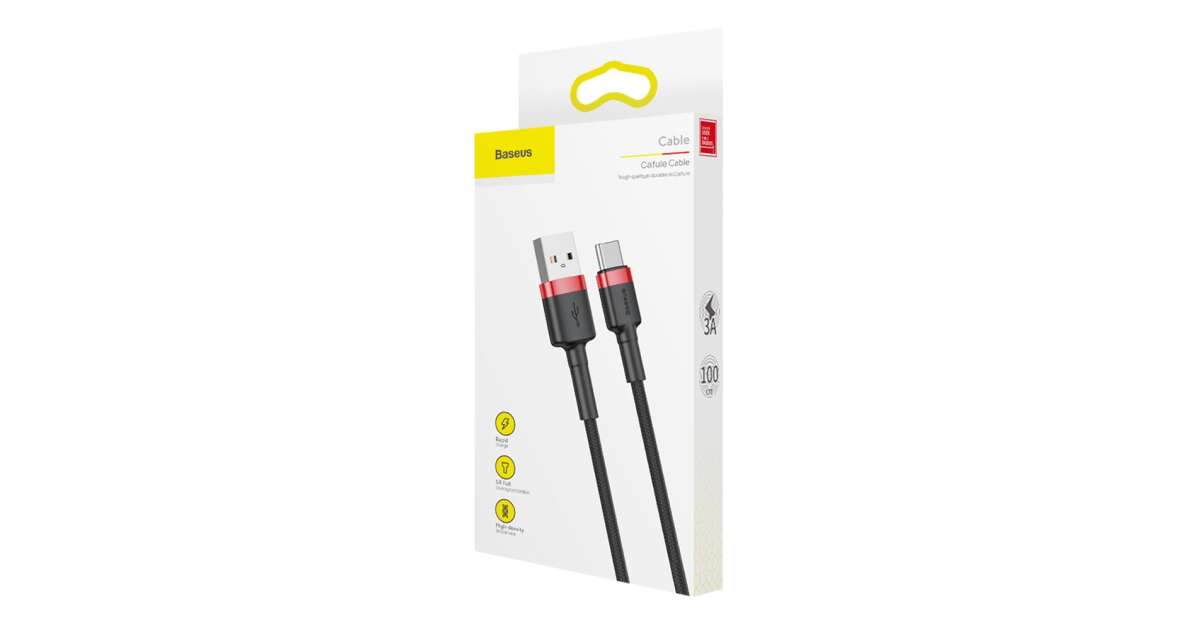 Кабел за данни и зареждане Baseus, Cafule CATKLF-B91, USB към USB Type-C, 3A, 1 м, Черен/Червен (CATKLF-B91) описание на...