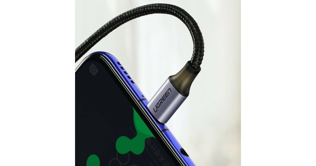 Кабел от USB-C към USB-C, наклонен UGREEN QC 3.0 PD 3A 60W 1m (черен) описание на...