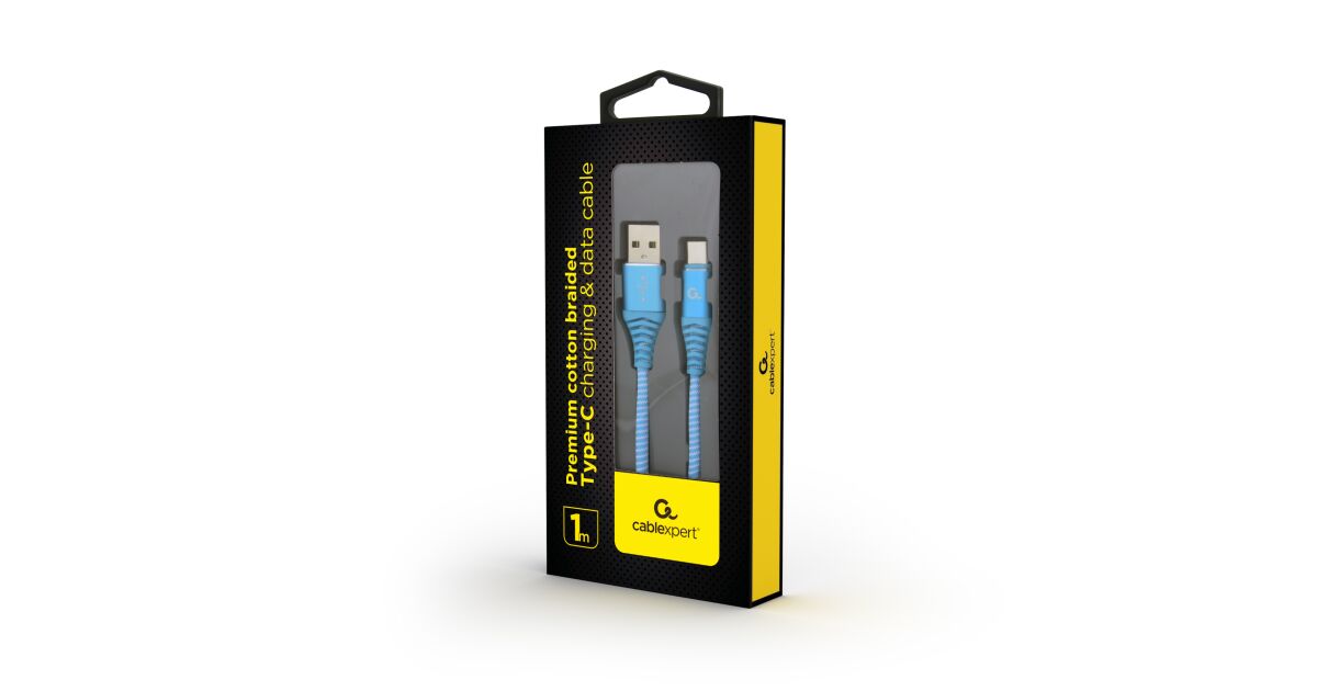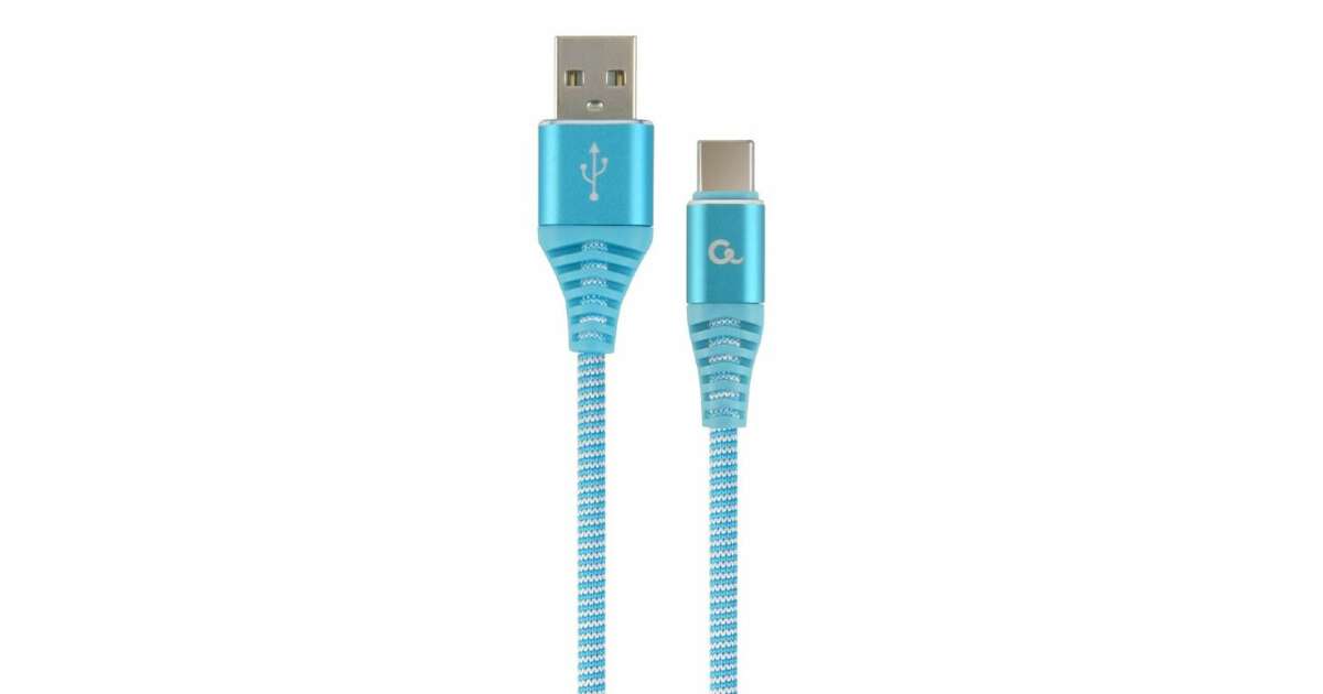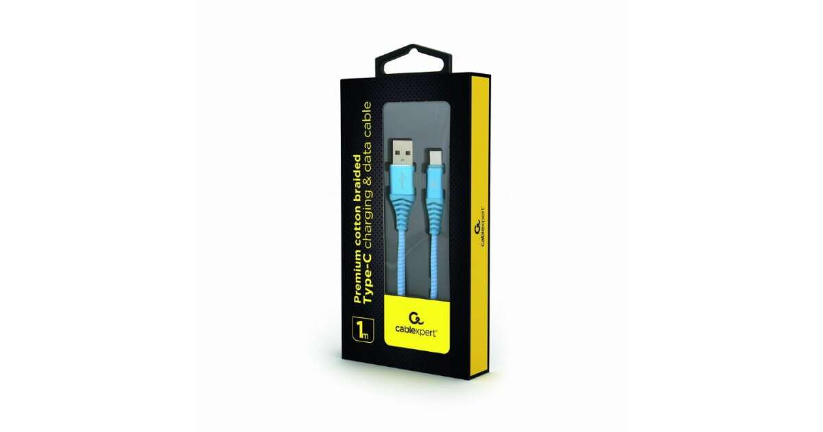 Gembird Type-C USB Кабел за Зареждане и Данни: Премиум Памучно Плетено, 1m, Тюркоаз/Бяло 💙🤍