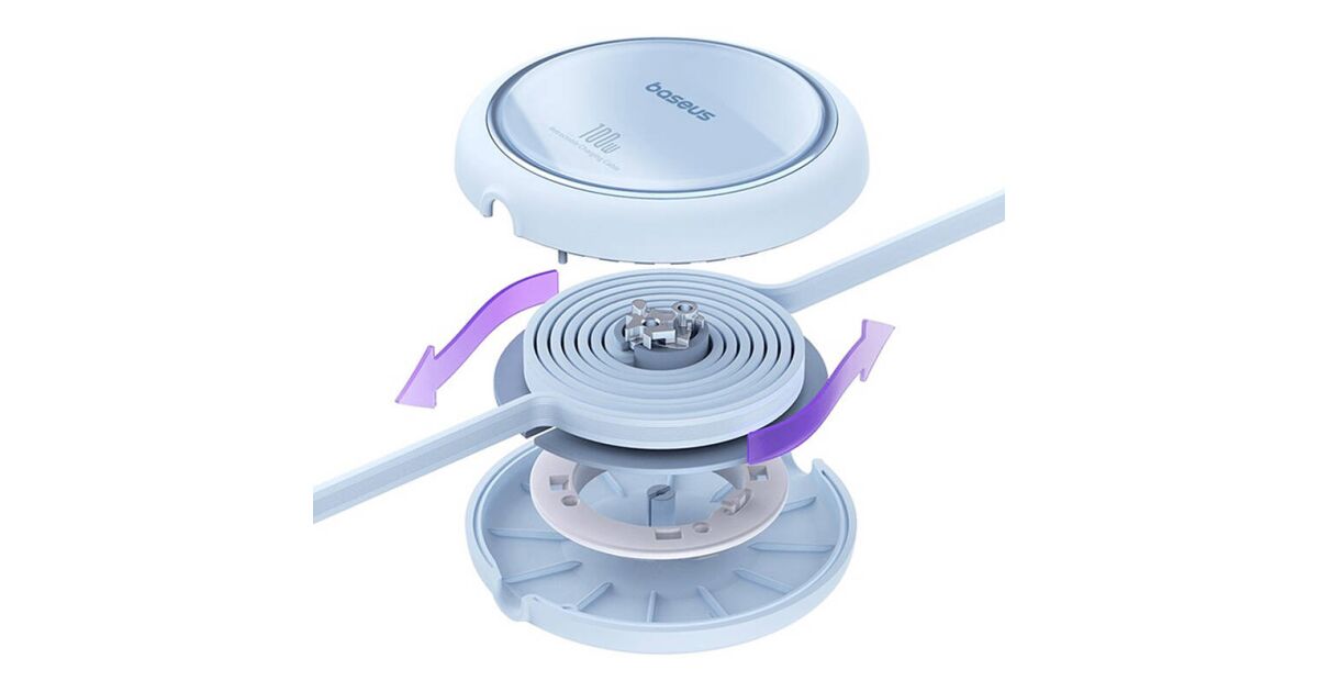 Мини кабел Baseus Free2Draw, прибиращ се, USB-C към USB-C, 100 W, 1 m, син (P10364500311-00) описание на...