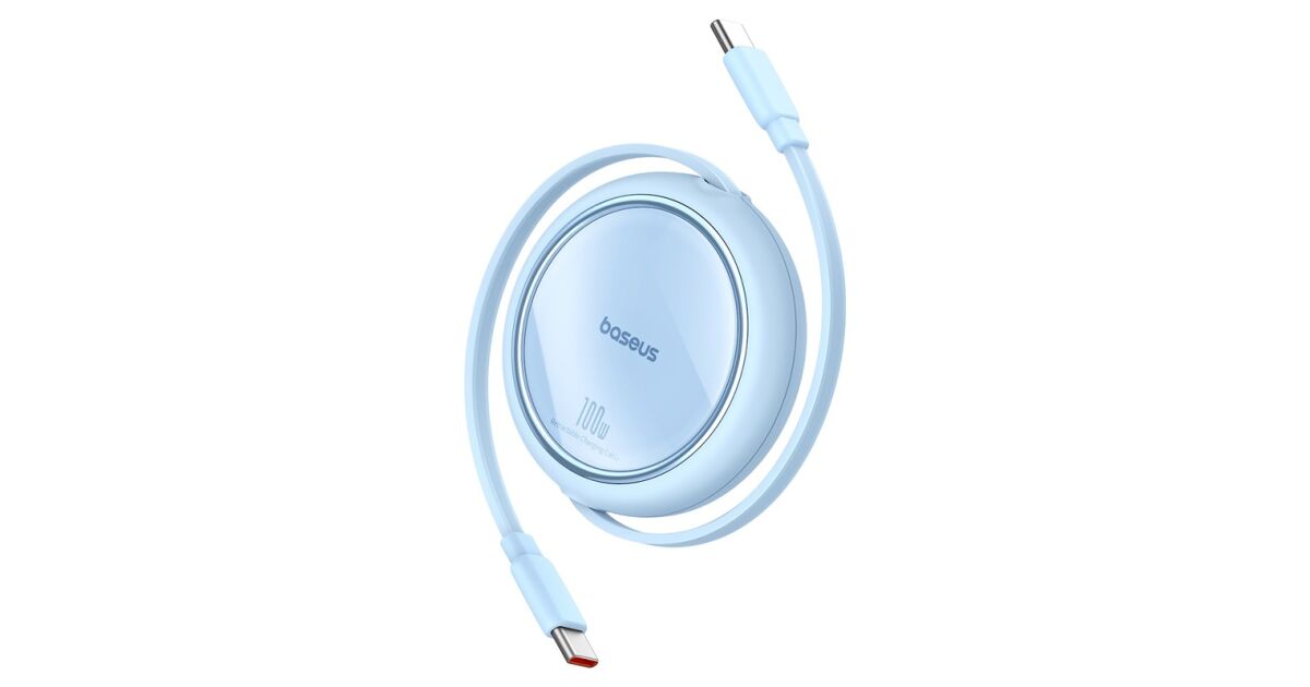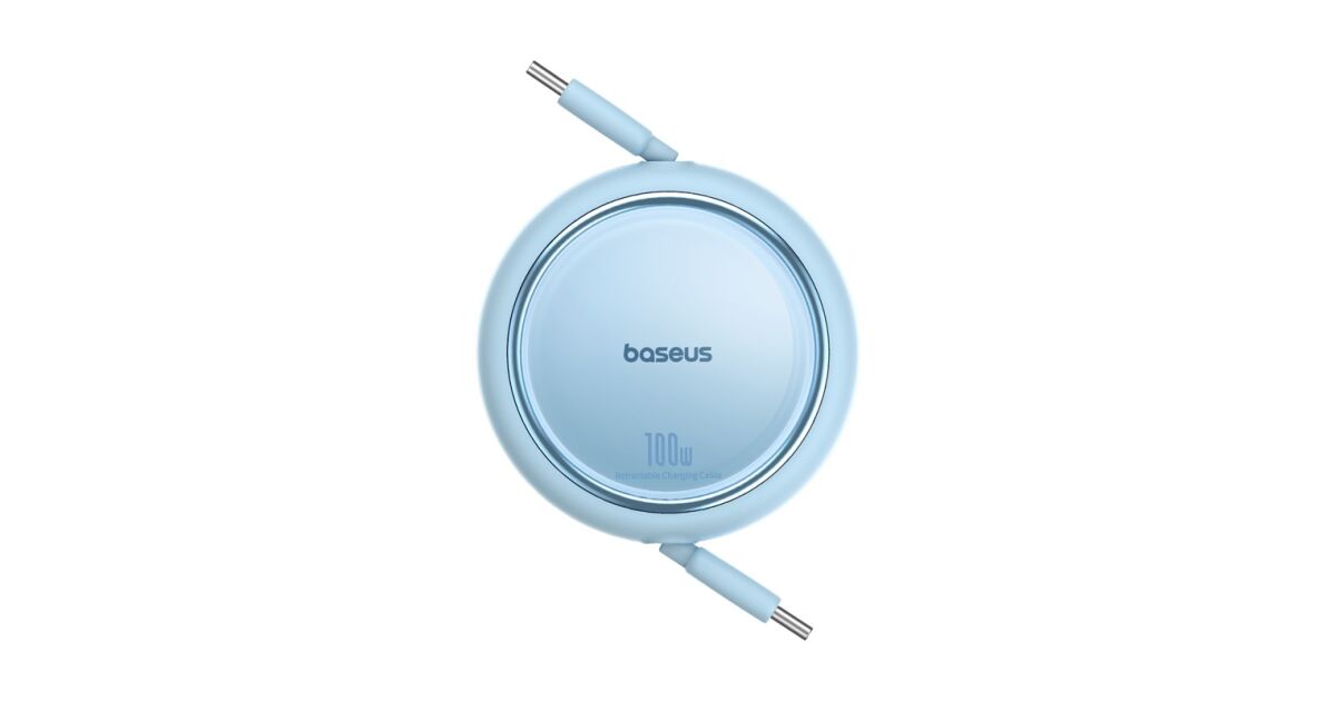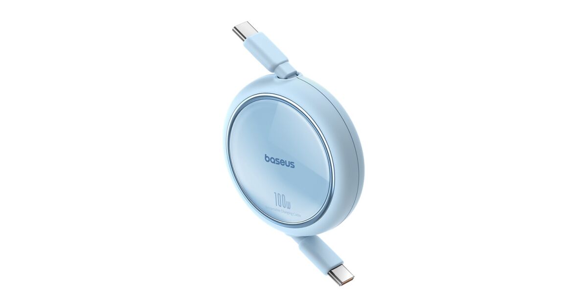 Мини кабел Baseus Free2Draw, прибиращ се, USB-C към USB-C, 100 W, 1 m, син (P10364500311-00)