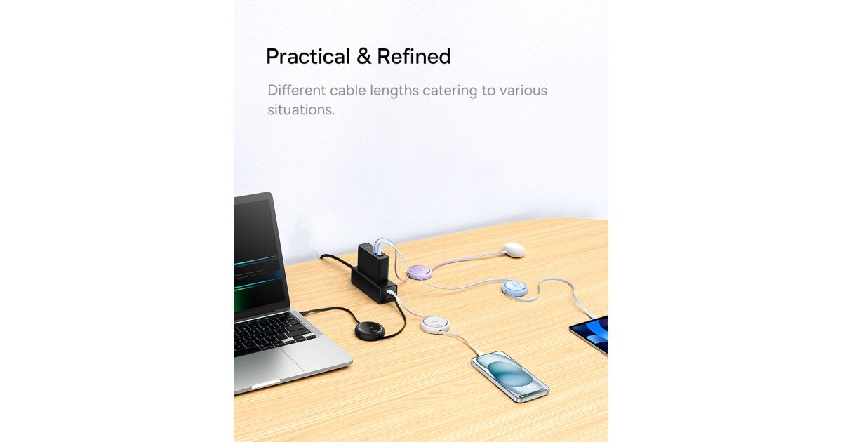 - Прибиращ се Кабел: Компактният, прибиращ се корпус предотвратява заплитането на кабела и го предпазва от повреди. Винаги е под ръка и винаги е подреден. 🔄