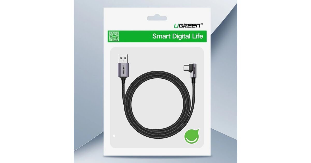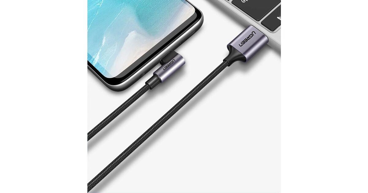 UGREEN Ъглов USB-C Кабел: 3m Дължина, Издръжливо Найлоново Покритие 💪