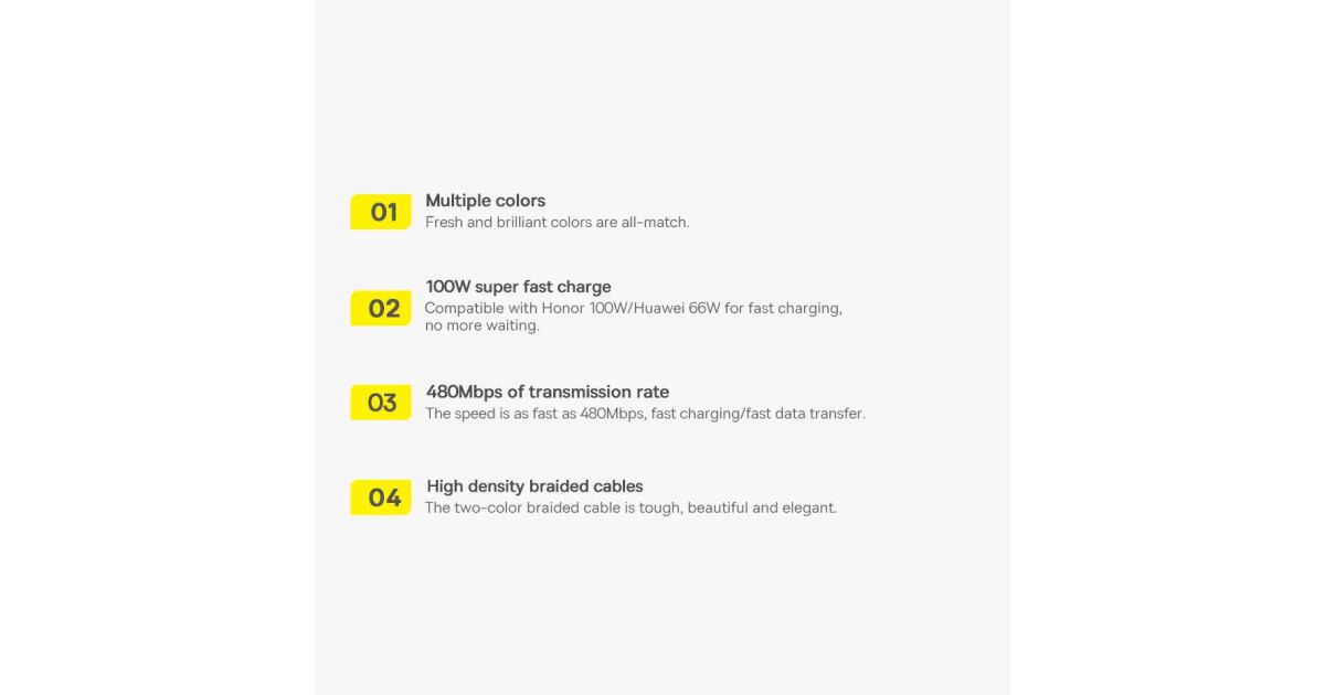 8-жичният меден кабел и интелигентният чип гарантират безопасна и ефективна работа, дори при едновременно зареждане и пренос на данни. Плетената външна обвивка е устойчива на огъване и износване, така че можеш да се наслаждаваш на надеждната работа на кабела за дълго време.