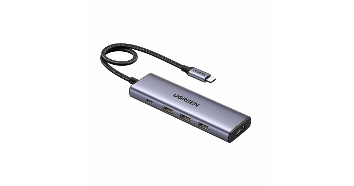Многофункционален HUB 5in1 USB-C - HDMI 1.4 / 3 x USB-A / USB-C PD 100W Ugreen CM511 - сив описание на...