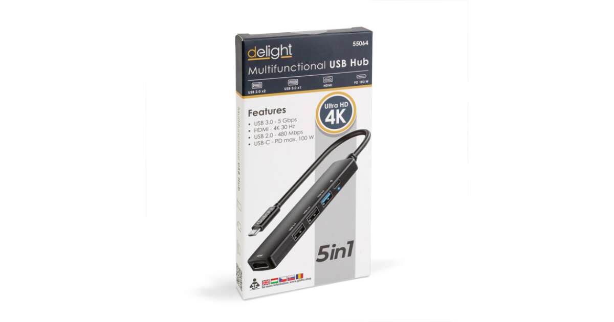 Този мултифункционален USB хъб е идеалното решение, ако искате да свържете няколко устройства към лаптопа си едновременно. С HDMI порт можете да се свържете към външен монитор или телевизор, а с 3 USB-A порта можете да свържете периферни устройства и флашки. Високоскоростният USB 3.0 Type-C порт осигурява скорост до 5 Gbps, докато другият Type-C порт може да осигури 100W мощност, така че можете дори да зареждате лаптопа или телефона си от него.