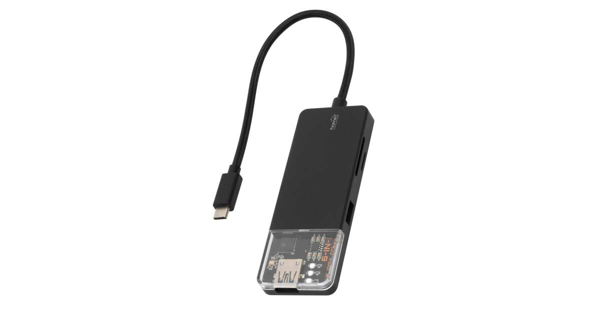 -Начало USBHUB6 докинг станция, 4K HDMI, мишка, клавиатура, TF/microSD, SD, USB памет, твърд диск, ~100 W PD, plug & play, LED обратна връзка описание на...