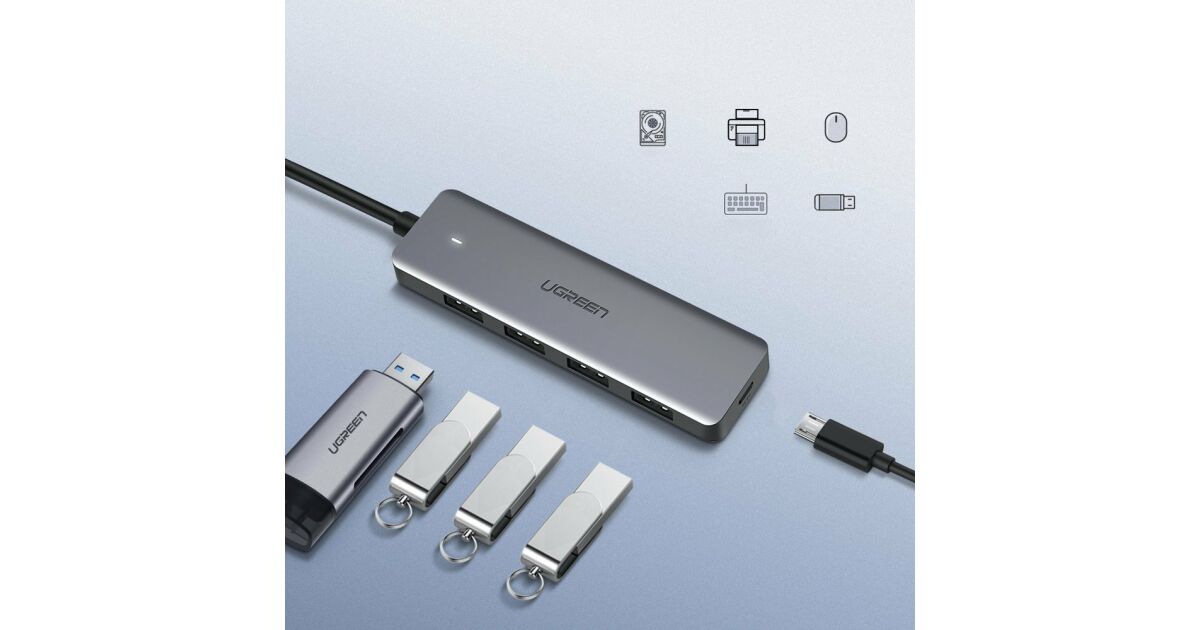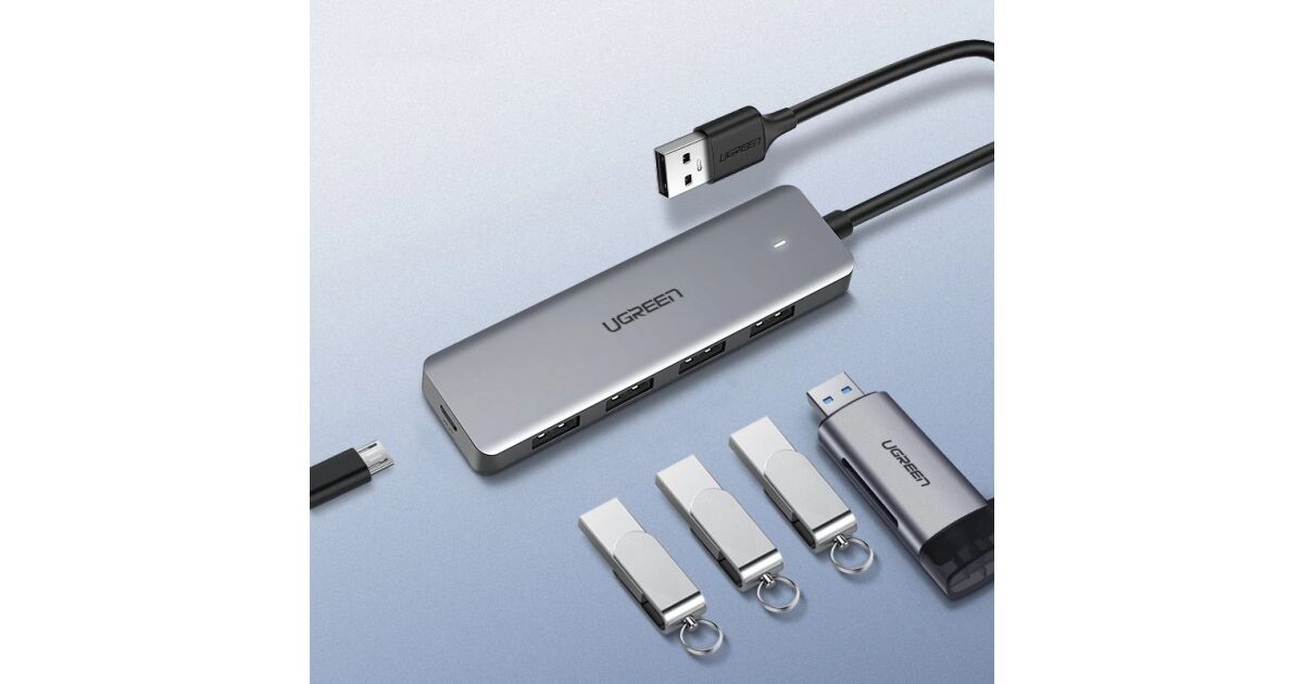 Този 5-портов USB хъб от UGREEN е перфектното решение, ако искаш да свържеш повече устройства към компютъра си едновременно. Разполага с четири USB 3.0 и един USB-C порта, така че лесно можеш да свържеш външни хард дискове, флашки, клавиатури, мишки и други USB устройства.