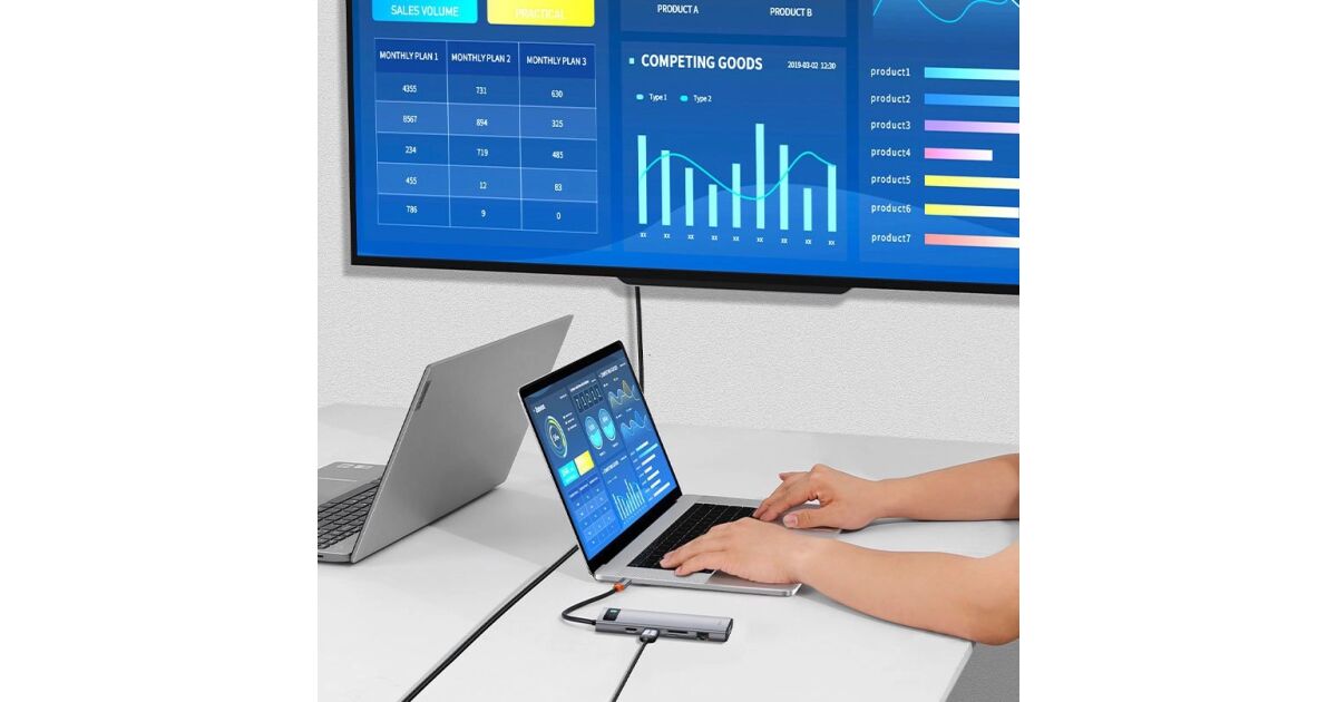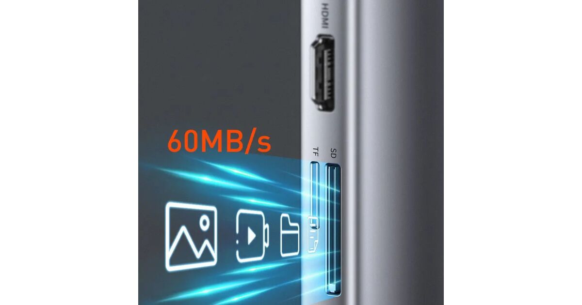 - 100W PD бързо зареждане: Можеш да зареждаш лаптопа си с хъба, без да е необходимо да изключваш другите устройства.
