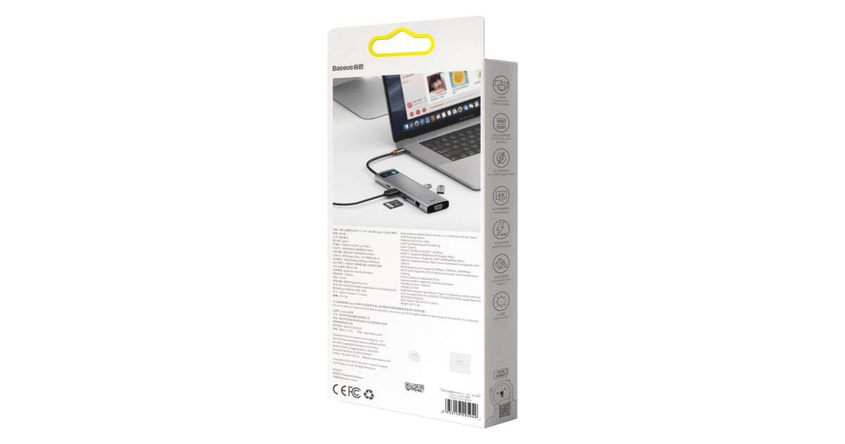 Този 11-в-1 USB-C хъб от серията Baseus Metal Gleam е универсално решение, ако имаш нужда от повече възможности за свързване към твоя лаптоп или друго USB-C устройство. Просто го включи в лаптопа си и веднага ще имаш достъп до 10 допълнителни порта за всички необходими функции.