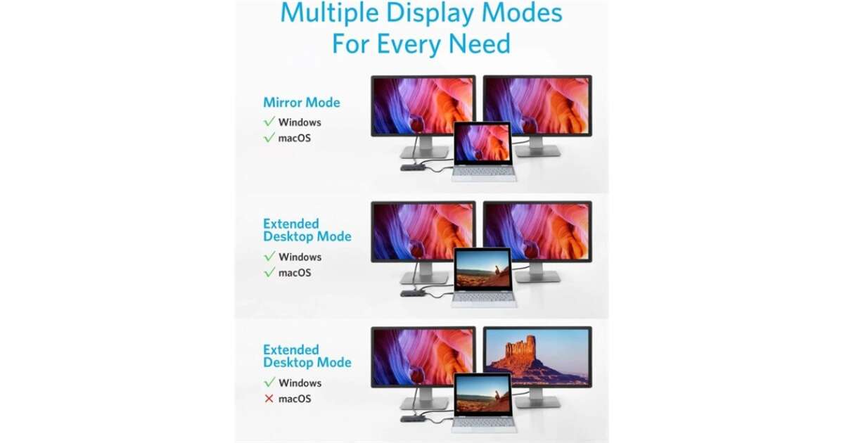 В Windows е налична и опцията за разширен десктоп режим, докато в macOS е възможно само дублиране на екрана.
