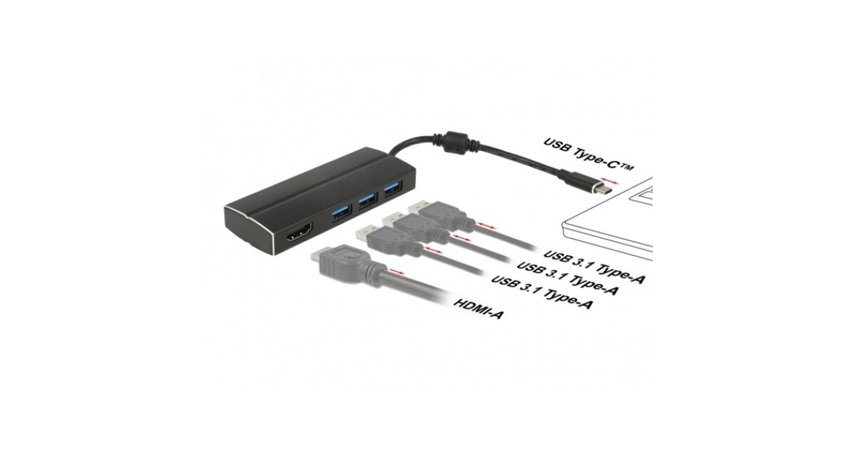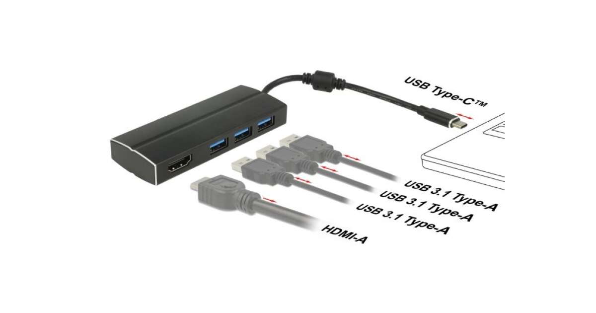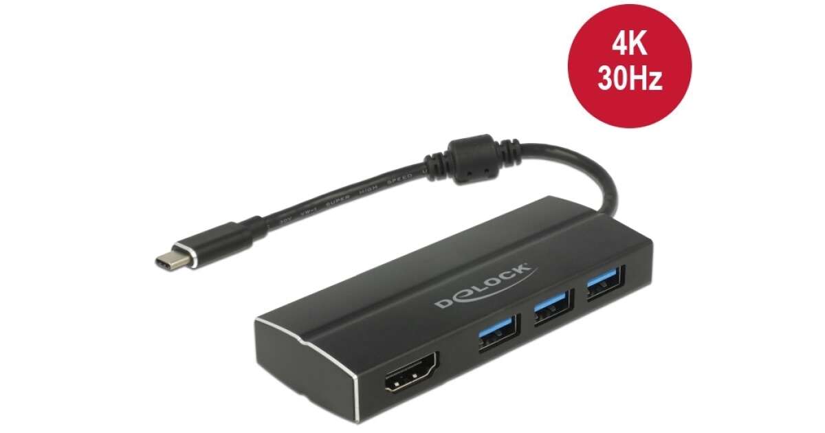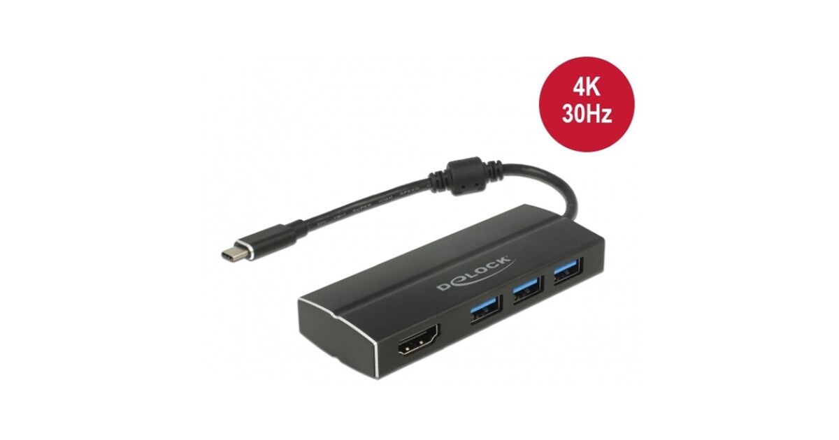 Delock USB 3.1 Gen 1 адаптер USB Type-C 3 x 3.0 USB Type-A 1 x HDMI (DP Alt Mode) 4K 30 Hz