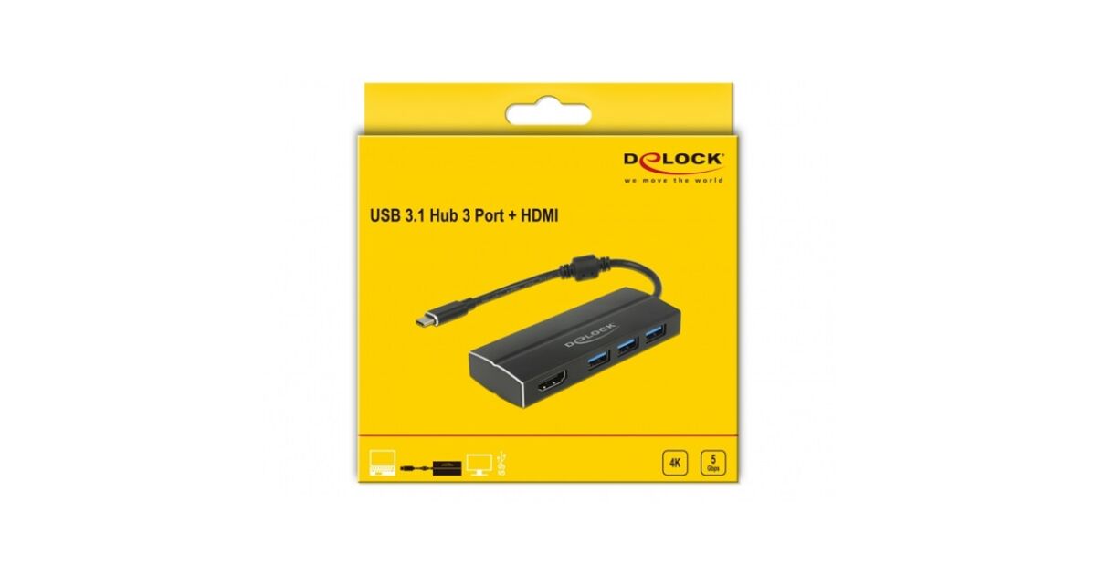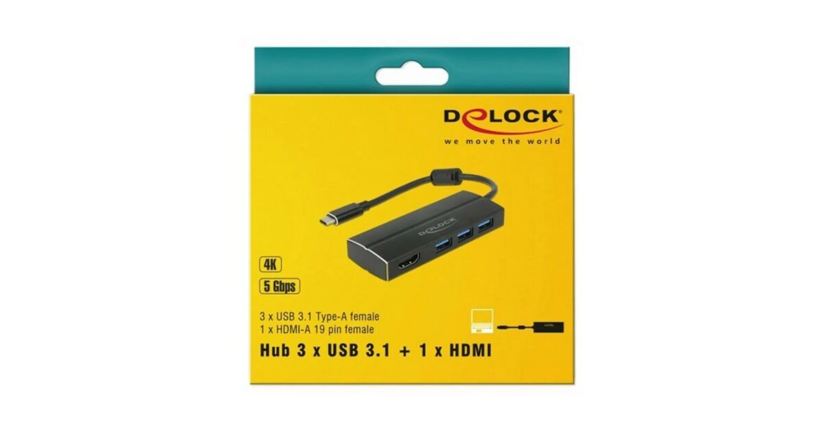 Този Delock USB-C хъб е идеалното решение за разширяване на възможностите за свързване. Просто го свържете към лаптоп или настолен компютър с USB-C порт и веднага ще имате 3 допълнителни USB 3.0 A порта и HDMI порт, чрез които да свързвате устройства. HDMI изходът с 4K резолюция осигурява кристално чиста картина на вашия монитор.