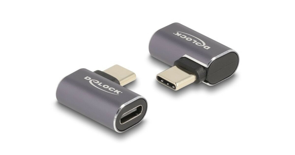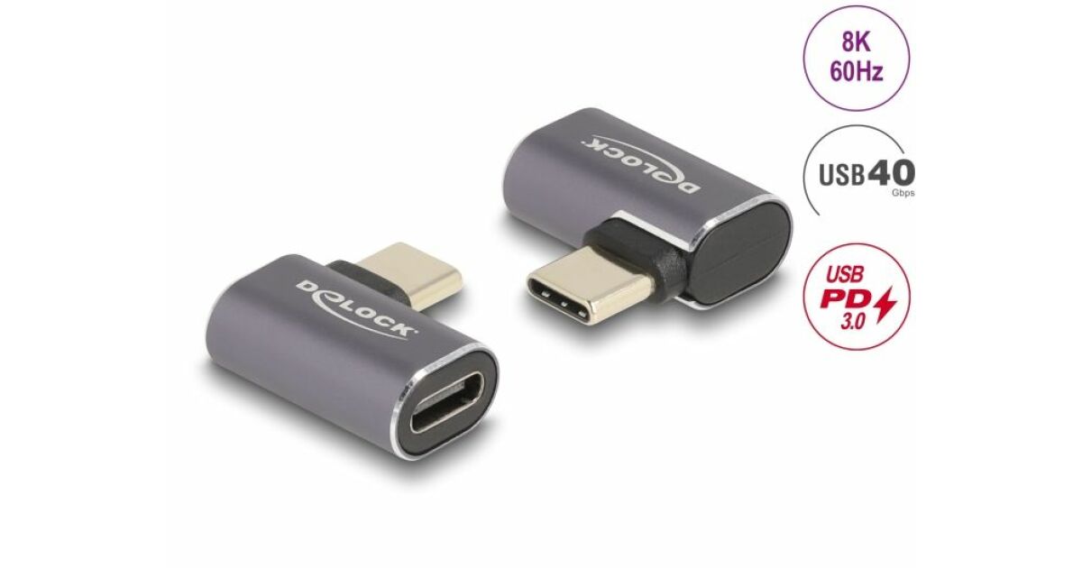 Delock USB адаптер 40 Gbps USB Type-C PD 3.0 100 W с щепсел - с втулка, извит наляво / надясно 8K 60 Hz метал