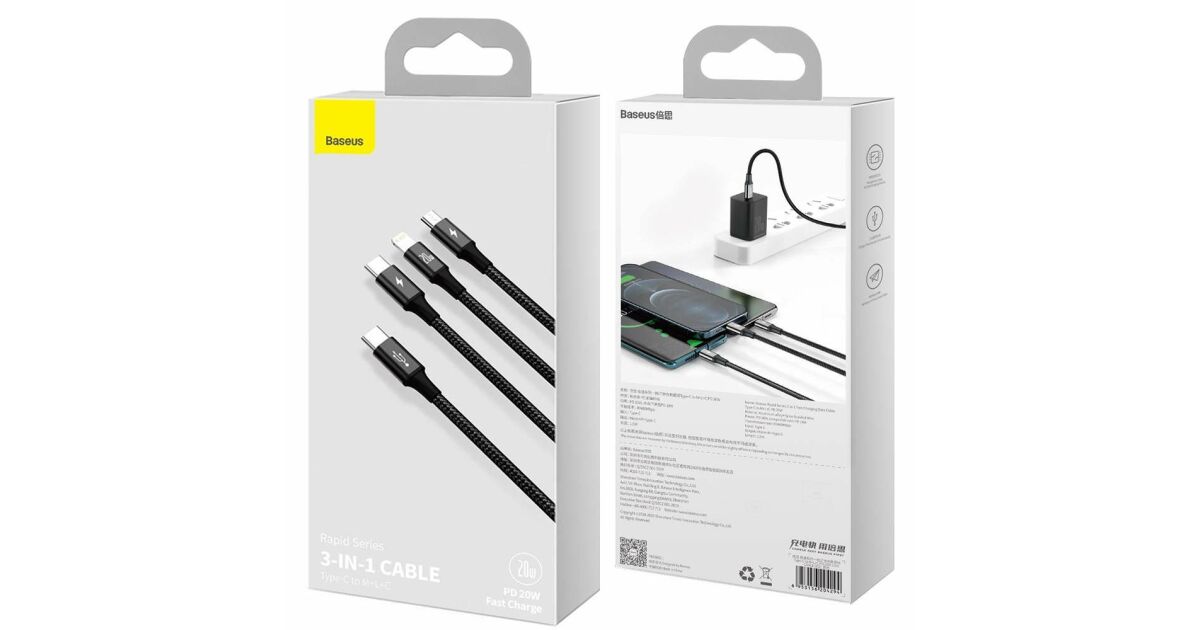 Baseus Rapid Series 3 3-в-1 Кабел за Бързо Зареждане: Заредете 3 Устройства Едновременно! 🚀