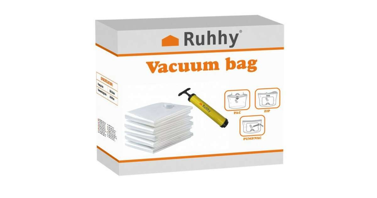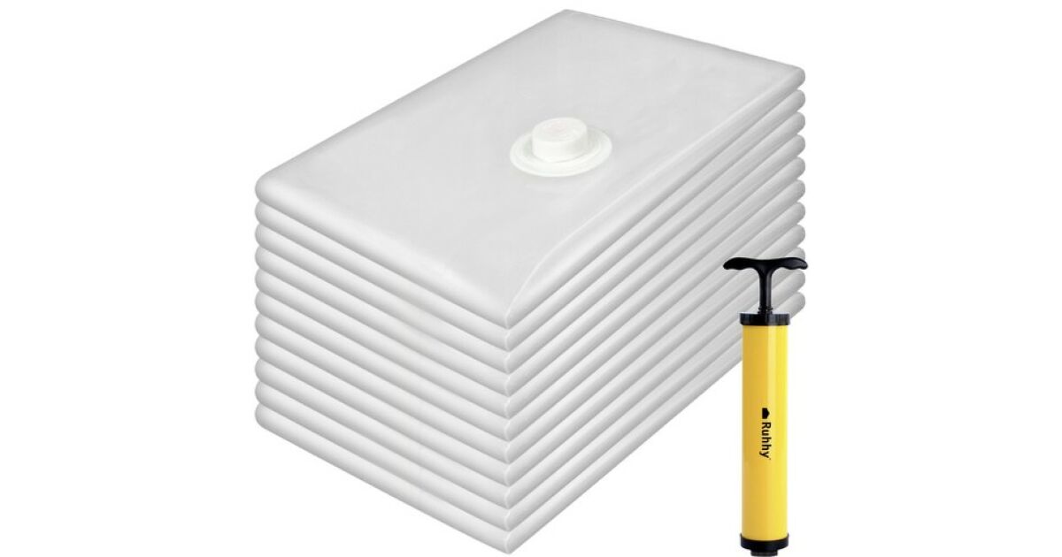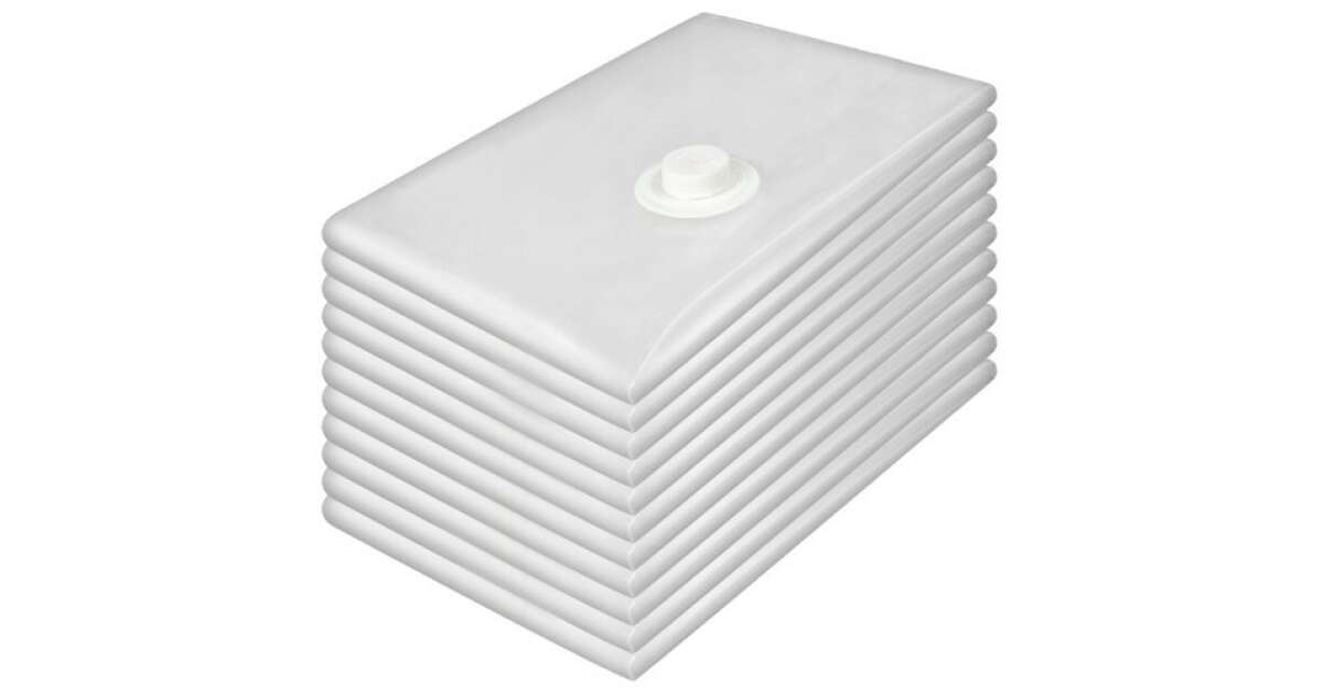 Този комплект от 10 вакуумни торби за съхранение е чудесно решение за спестяване на място при съхранение на дрехи, одеяла и други неща. С помощта на торбите с размери 50x70 cm можете да намалите обема на съхраняваните вещи до 80%! Благодарение на включената ръчна помпа можете лесно да изсмучете въздуха от торбите, дори и по време на пътуване. Клиентите също потвърждават лесната употреба и ефективността на продукта.
