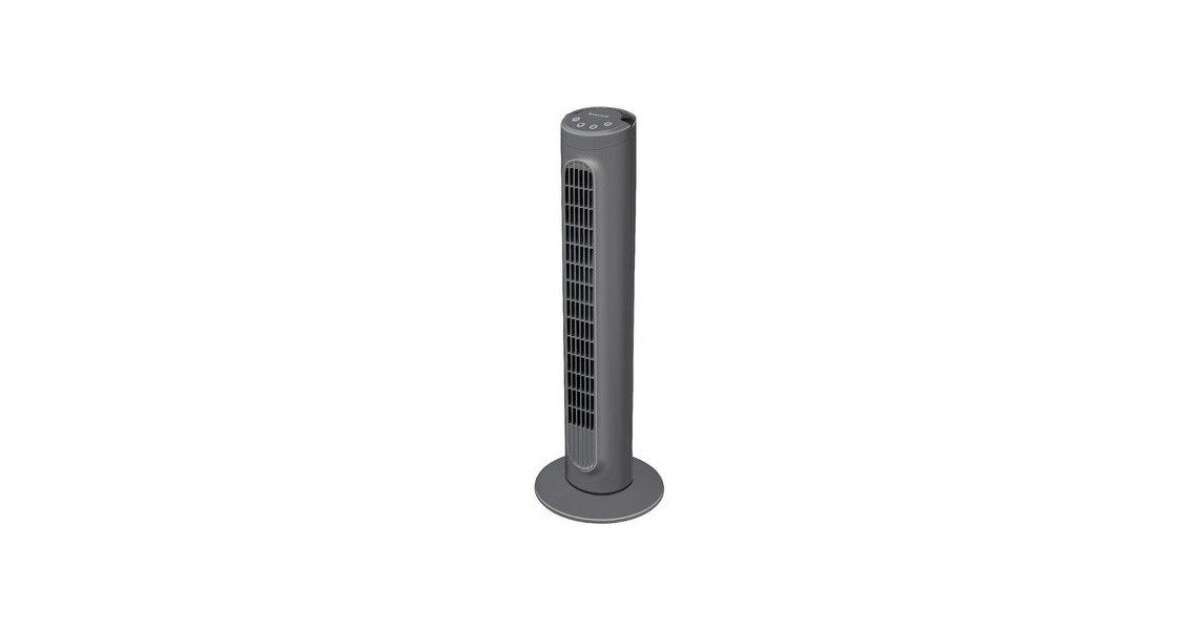 Компактен и стилен: Благодарение на тънкия дизайн на кулата, вентилаторът не заема много място и лесно се вписва във всяка стая. Сивият цвят е универсален, така че се съчетава с почти всеки интериор.
