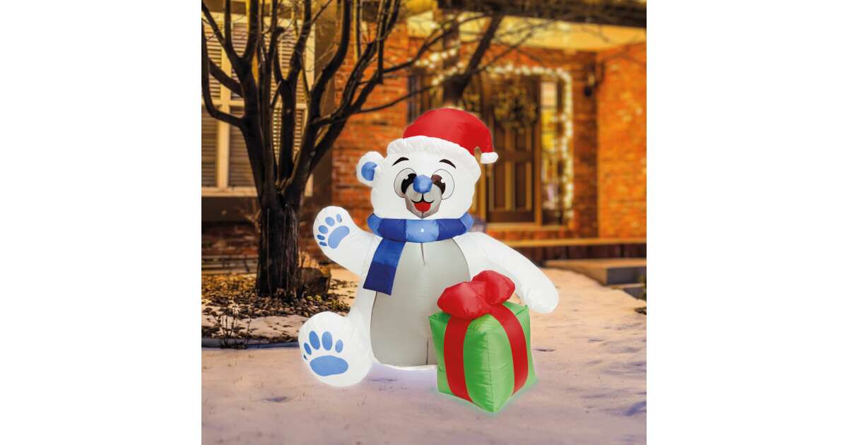 Създайте празнична атмосфера в дома си с този 120 см висок, сладък надуваем полярен мечок! 🐻🎄 Тази очарователна фигура е перфектното допълнение към вашата коледна украса и гарантирано ще предизвика усмивка на лицето на всеки.
