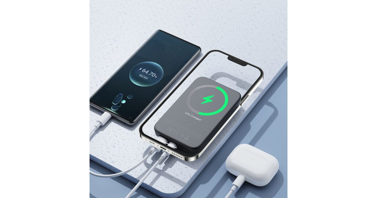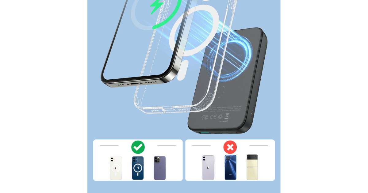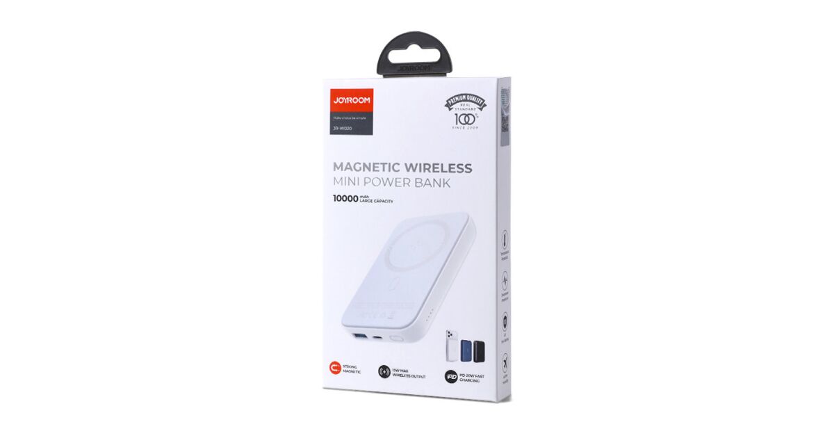 Тази Joyroom JR-W020 power bank е с капацитет 10000mAh и предлага магнитно безжично зареждане с до 15W мощност, което е перфектно за iPhone (съвместим с MagSafe). Вградената защита (защита от пренапрежение, претоварване, късо съединение) се грижи за безопасността на устройствата. Можеш удобно да зареждаш телефона си безжично, а компактният размер ти позволява лесно да го носиш навсякъде.