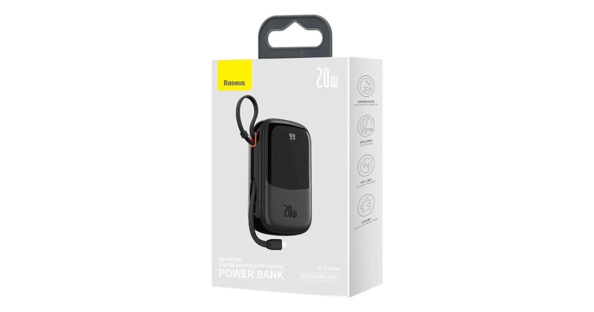 PowerBank Baseus Qpow, PPQD-H01, 20000 mAh, 1 x USB, 1 x USB-C, 1 x IP Black, С Lightning кабел, Бързо зареждане, 20 W, С цифров дисплей (PPQD060201) описание на...