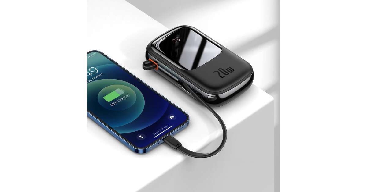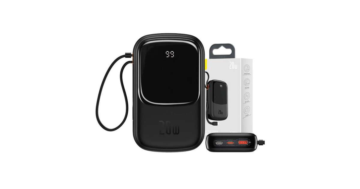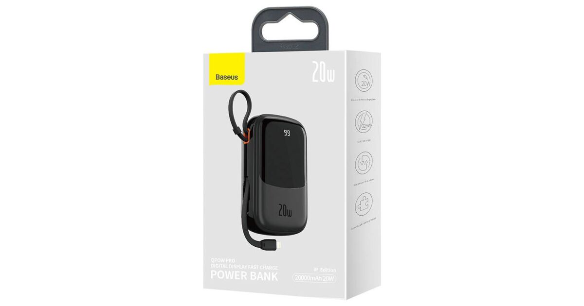PowerBank Baseus Qpow, PPQD-H01, 20000 mAh, 1 x USB, 1 x USB-C, 1 x IP Black, С Lightning кабел, Бързо зареждане, 20 W, С цифров дисплей (PPQD060201) покупка: