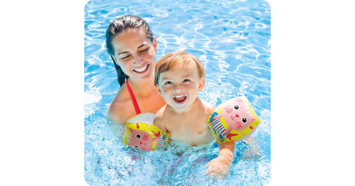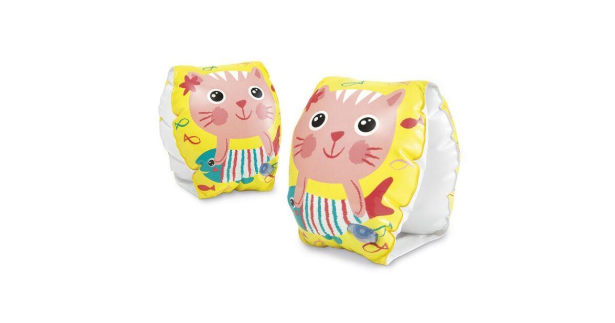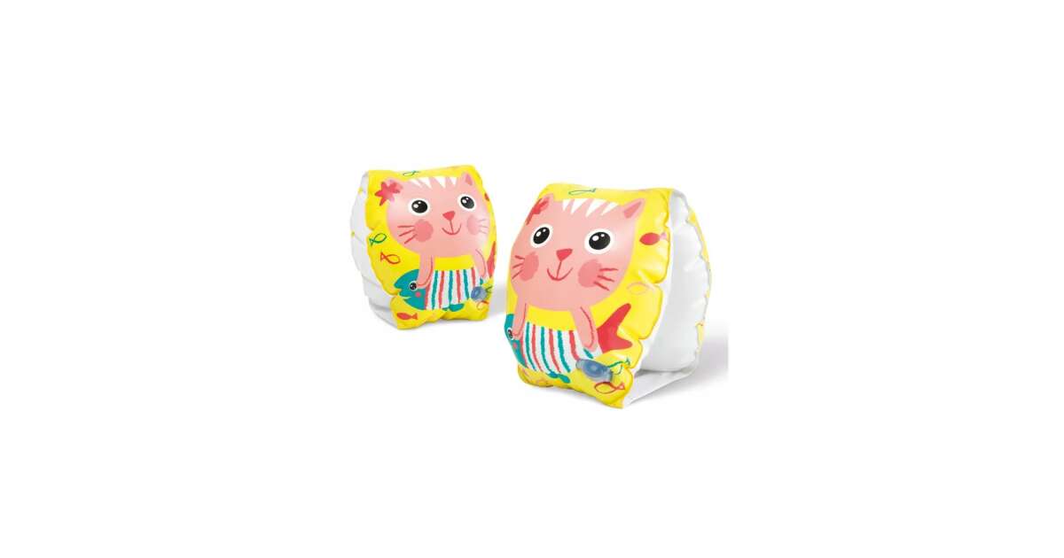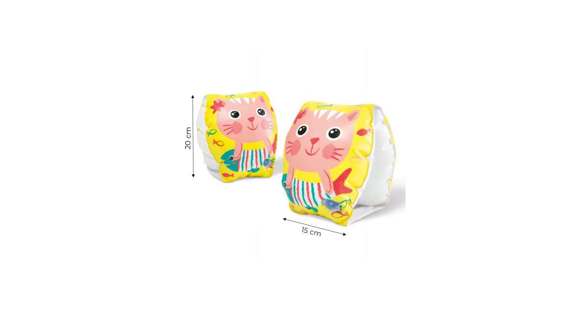 Тези сладки ръкавели Intex с котки са идеални за най-малките, които обичат да играят във водата и да се учат да плуват! Имат две въздушни камери за повишена безопасност и са изработени от меко, удобно PVC.