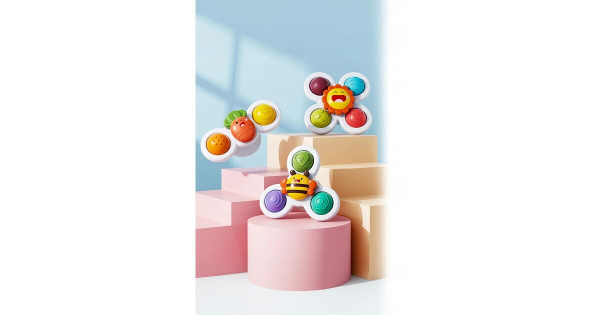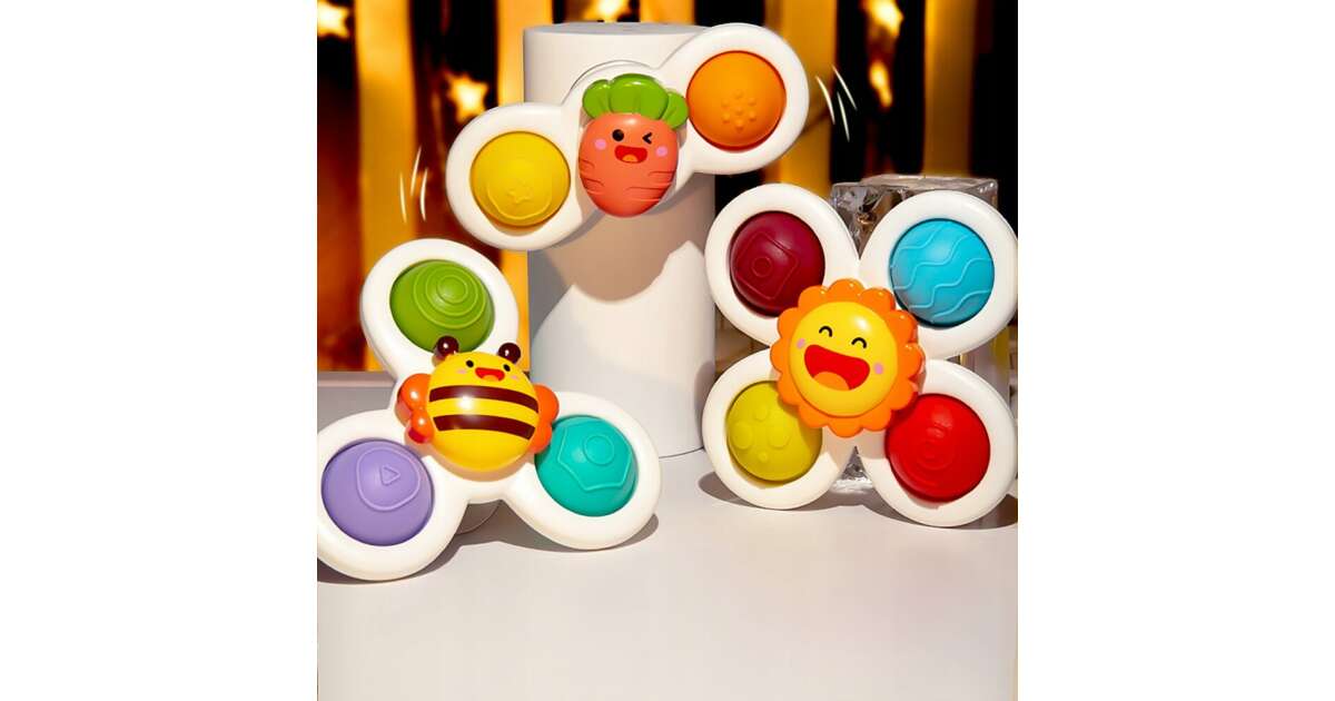 Този комплект от 3 сензорни спинери предлага часове забавление и развитие за най-малките! Благодарение на веселите, цветни дизайни и вендузите, може да се използва навсякъде: във ваната, в колата или дори на масата. Според потребителите, играчката е изключително забавна и има развиващ ефект.
