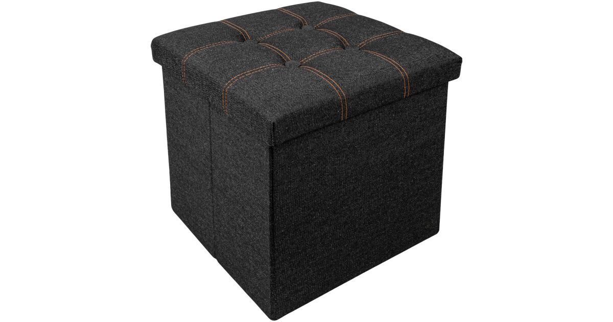 FizioTab® Сгъваема табуретка с място за съхранение, тип кутия, османска, текстилен куб, 38X38X38 см, черна