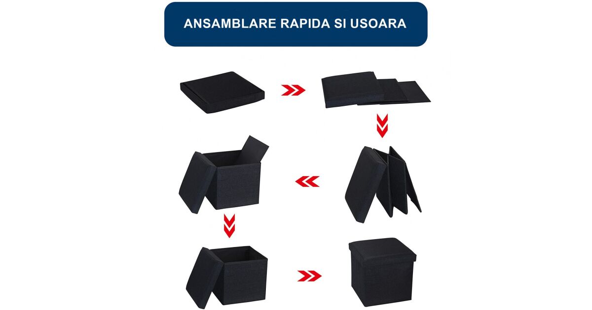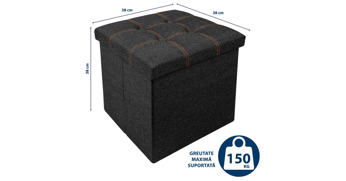 FizioTab® Сгъваема табуретка с място за съхранение, тип кутия, османска, текстилен куб, 38X38X38 см, черна описание на...