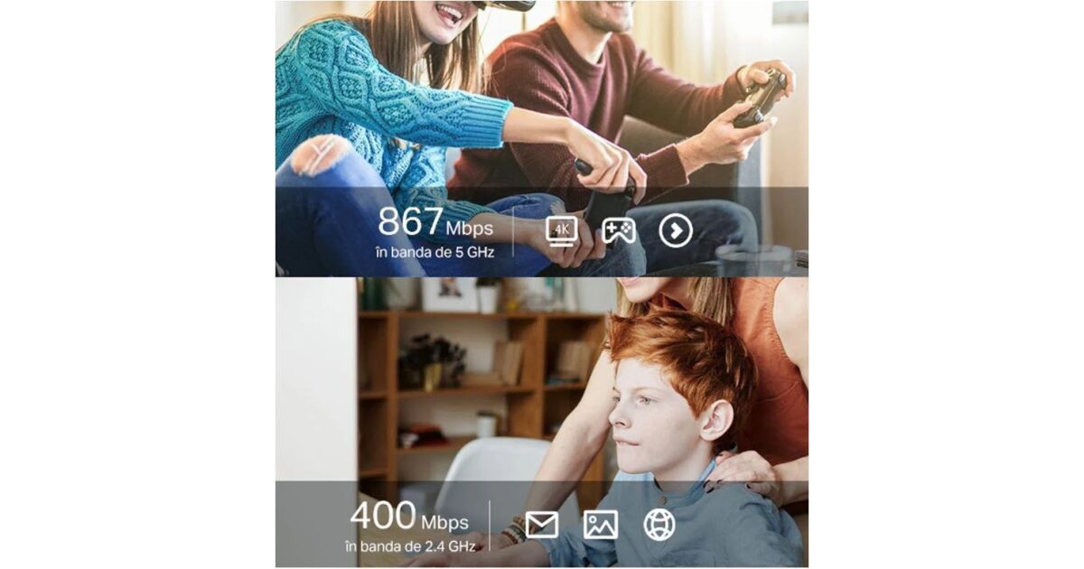 - AC1300 Dual Band: Насладете се на предимствата на 2.4 GHz и 5 GHz лентите, оптимизирани за скорост и стабилност. 2.4 GHz е идеален за по-голям обхват, докато 5 GHz осигурява по-бърз трансфер на данни.