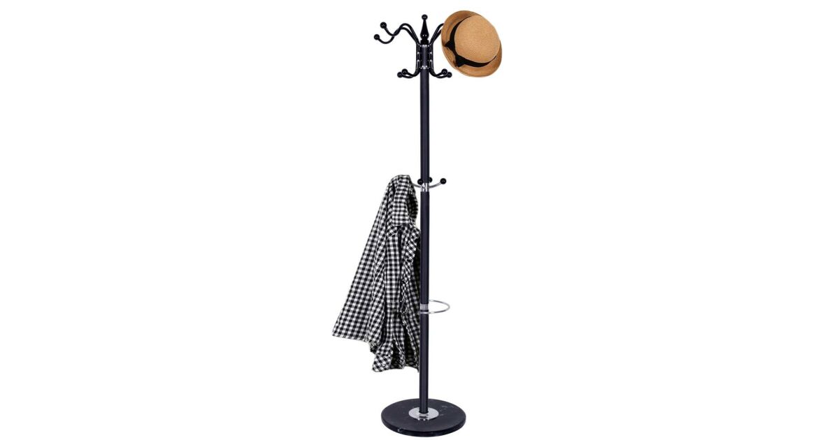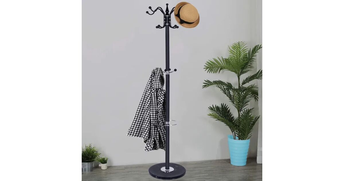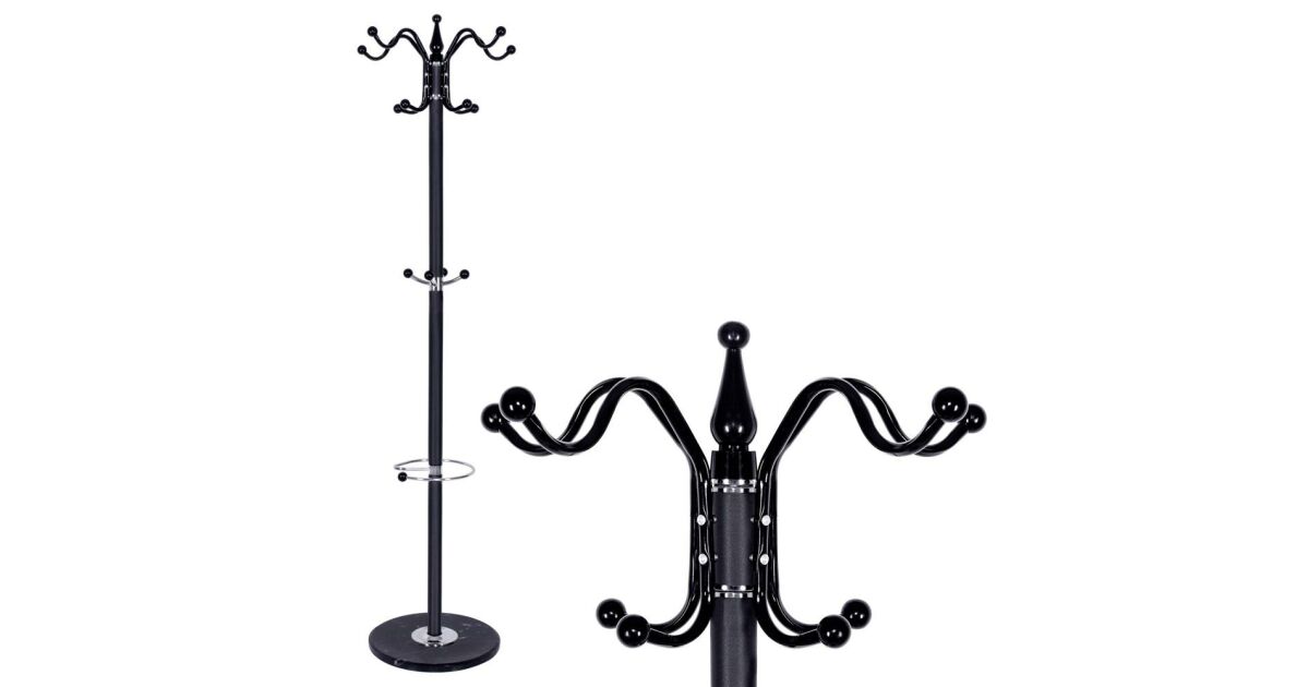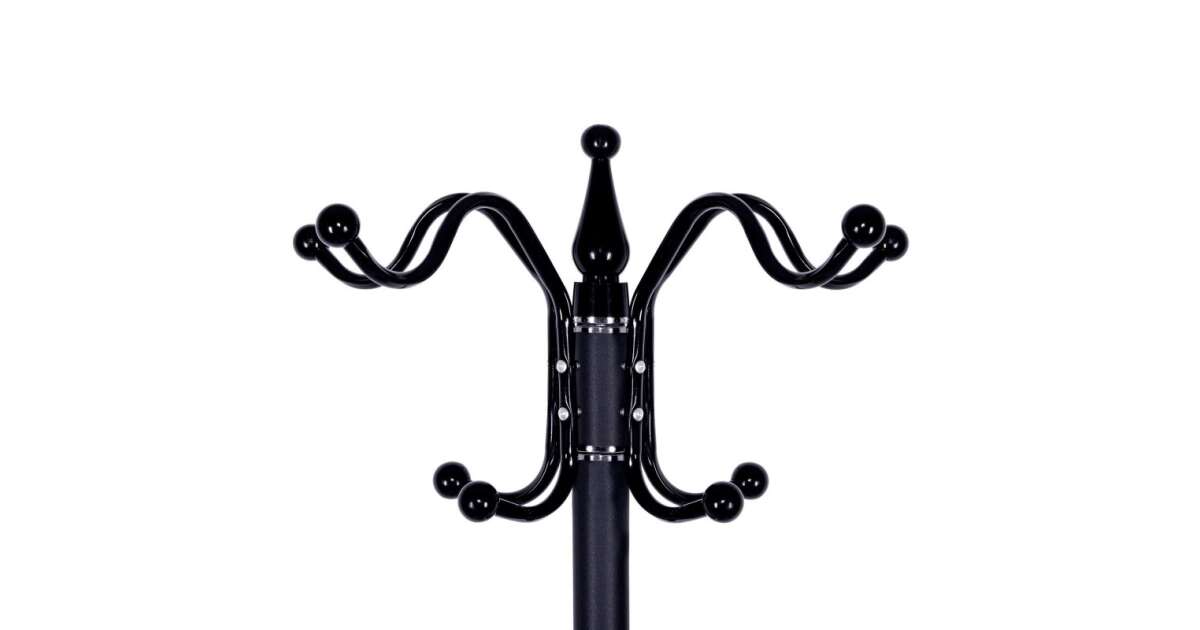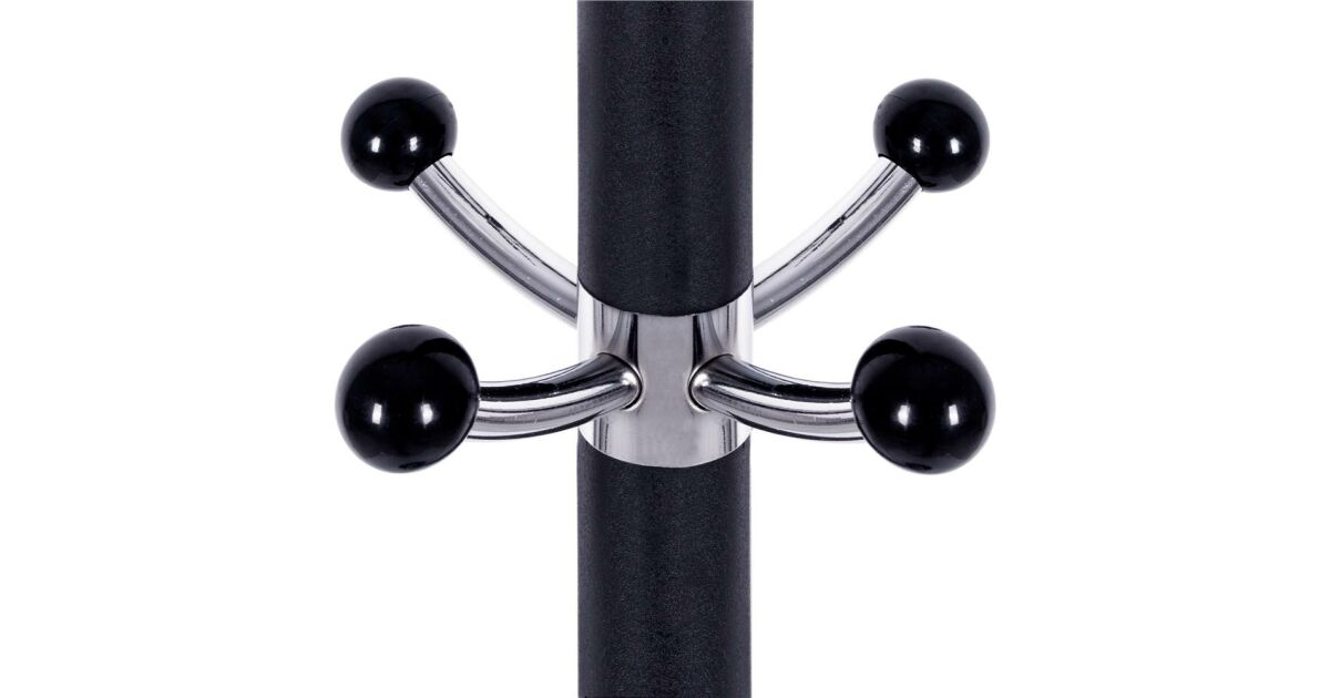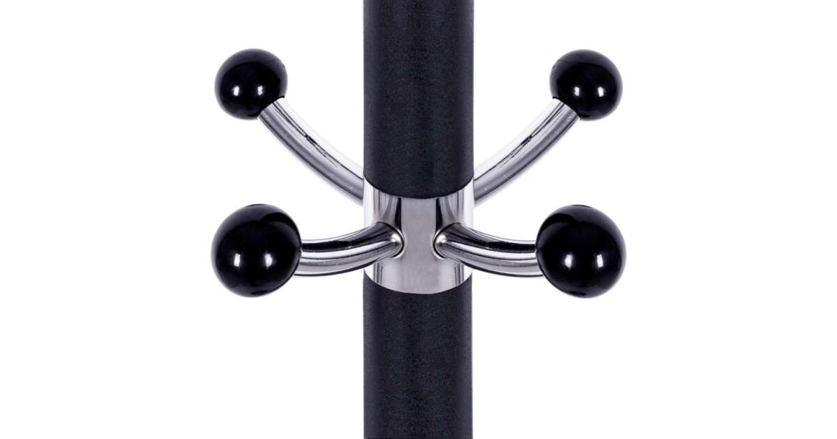 Тази стилна и практична стояща закачалка за дрехи е перфектният избор за антре, офис или всяко друго помещение. Закачалката е с височина 174 см, изработена е от елегантен матово черен метал и черна мраморна основа, която осигурява отлична стабилност. Заоблените куки предотвратяват изплъзването или повреждането на дрехите. Интегрираната поставка за чадъри е практично допълнение.