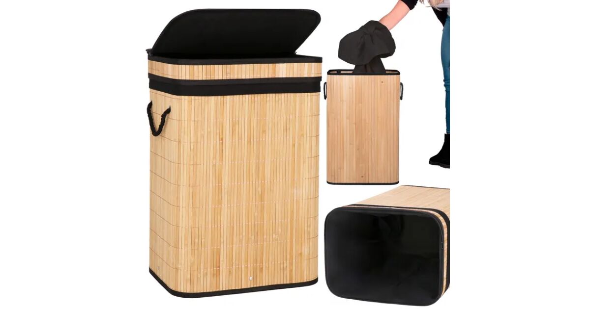 Този стилен кош за пране от бамбук Springos е идеалното решение за вашата спалня или баня, за да поддържате дрехите си организирани. С големия си капацитет (72L), в него може да се побере много пране. А кафяво-черната цветова комбинация се вписва във всеки стил на дома.