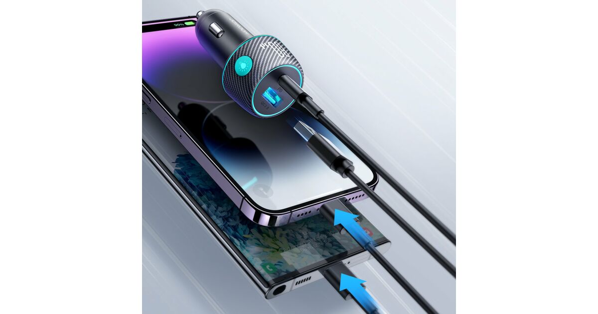 Това 60W автомобилно зарядно устройство Joyroom JR-CCN01 е идеалното решение, ако искате да зареждате бързо две устройства едновременно в колата си. Има USB-C и USB-A портове, така че можете да го използвате за зареждане на вашия телефон, таблет, TWS слушалки или power bank.