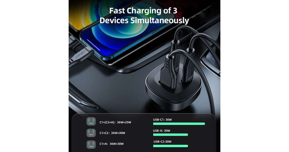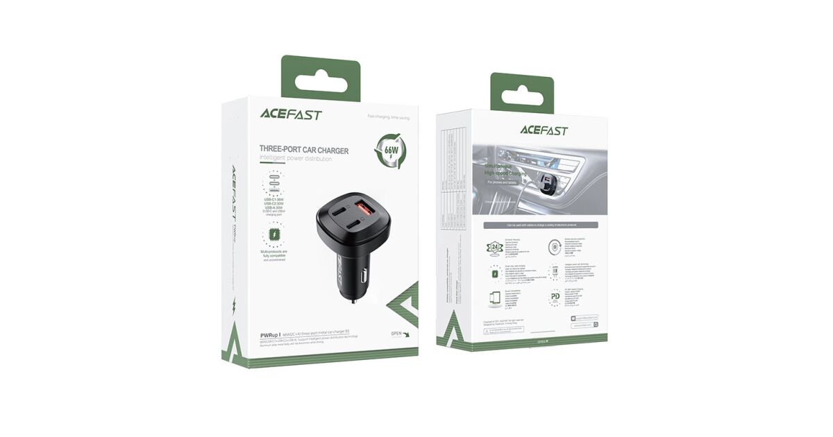 Acefast B3 Автомобилно Зарядно с Три Порта: 66W Бързо Зареждане ⚡