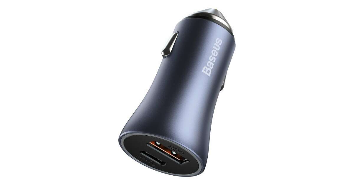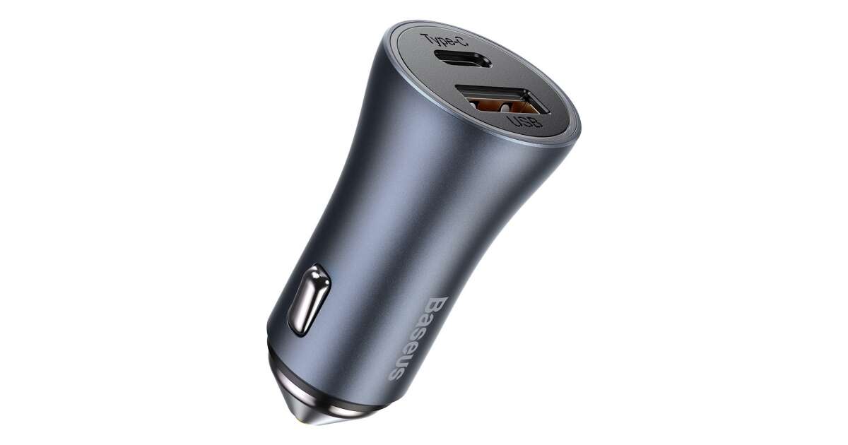 Това зарядно за кола Baseus Golden Contactor Pro е идеалният избор, ако искате бързо да зареждате две устройства едновременно, докато пътувате. Има два порта: USB-A и USB-C, така че можете да зареждате телефона и таблета си едновременно. Благодарение на вградената BPS II технология, той поддържа много протоколи за бързо зареждане, включително технологиите за бързо зареждане на Xiaomi и Samsung.