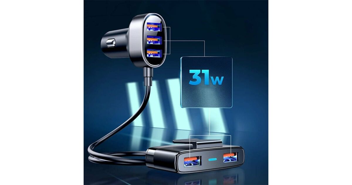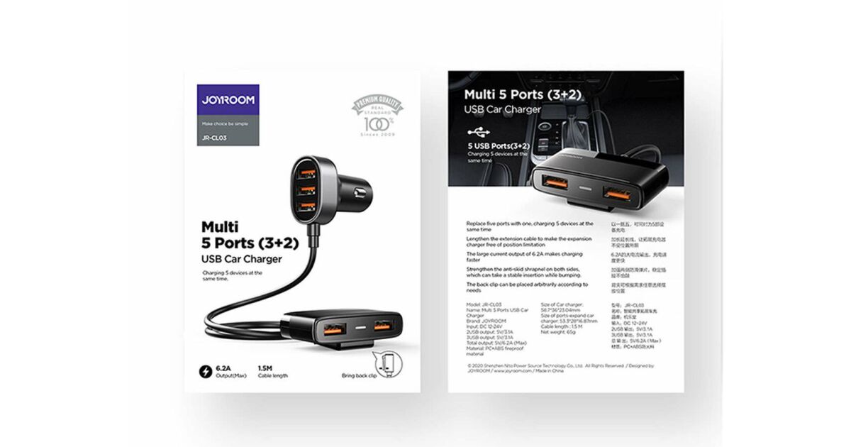 Това 5-портово USB зарядно за кола Joyroom е идеалното решение, ако искате да зареждате няколко устройства едновременно, докато пътувате. Благодарение на изходната мощност от 6.2A, то осигурява бързо и ефективно зареждане за всички ваши устройства.