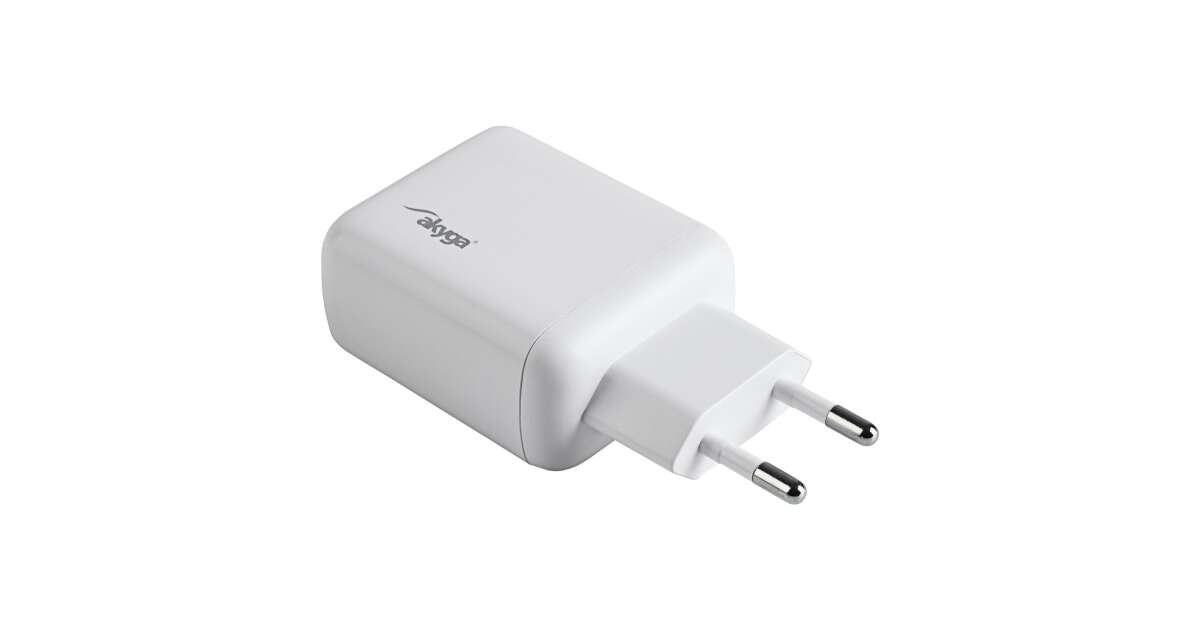 Akyga AK-CH-19 2xUSB-C PD Quick Charge 3.0 5-12V / 1, 67-3A 40W Бяло, Зарядно (AK-CH-19)